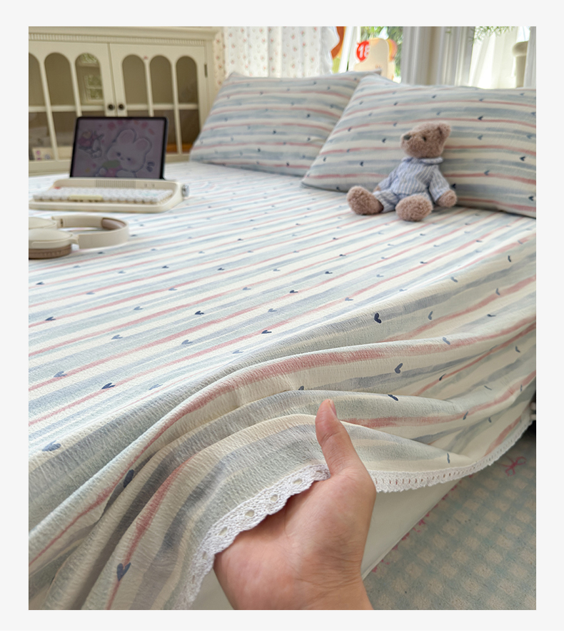 (总)沐芷 2026 【提供买家秀】古法水洗仿棉床笠席梦思床罩床垫防滑床套罩床笠三件套,萌物,甜梦糖豆,巴黎甜心,白月光,豹纹音乐,波点汪语,彩虹跳跳糖,漫游小鱼,萌犬游记,迷你格-黄,迷你格-蓝,奶味圆饼,暖意小熊,星仔,樱桃物语,组合图