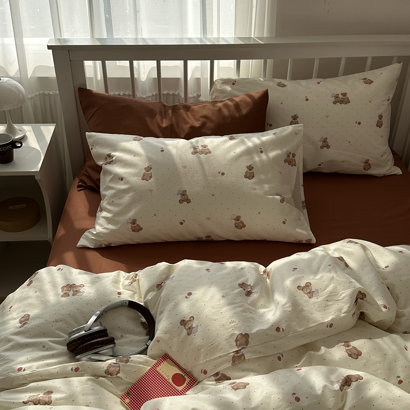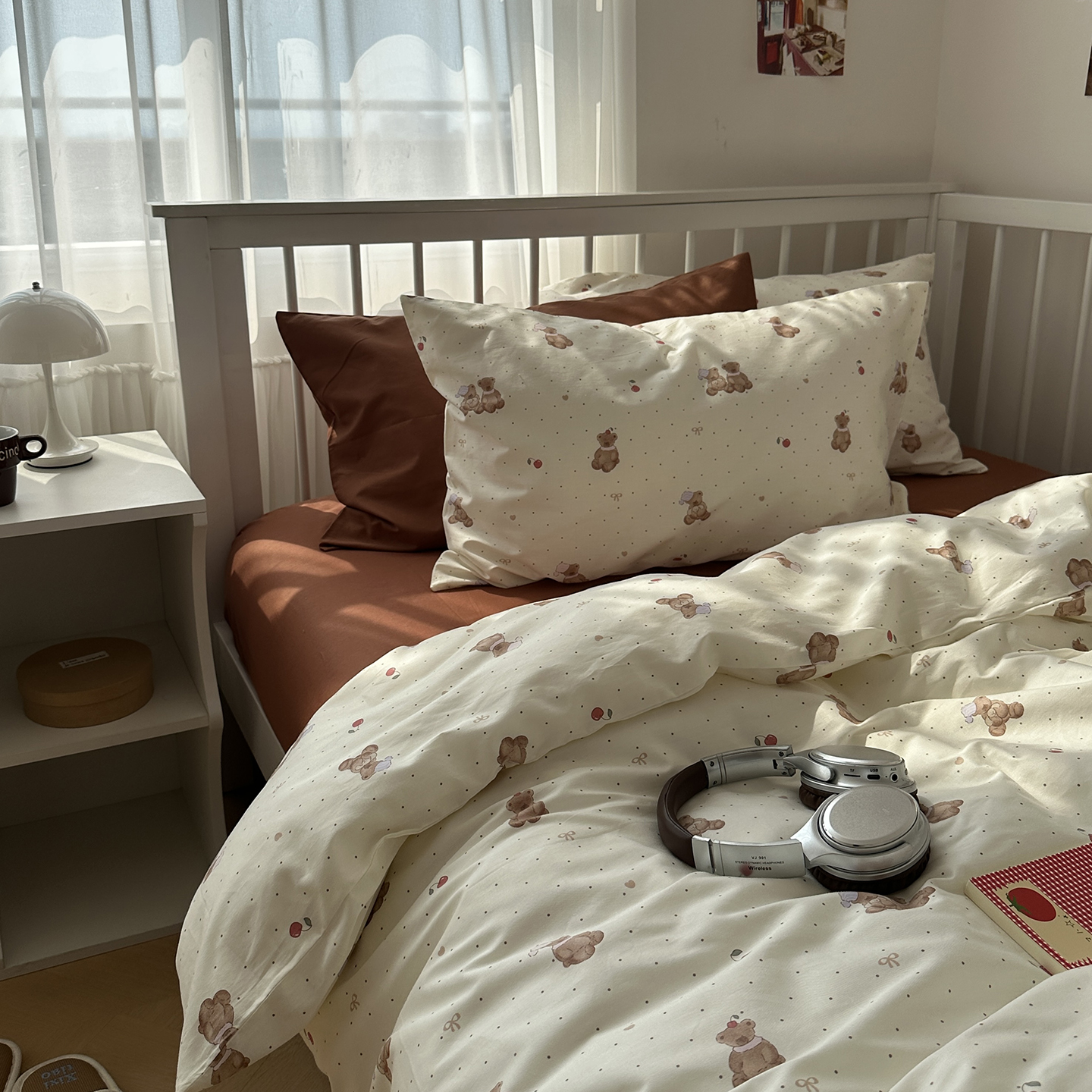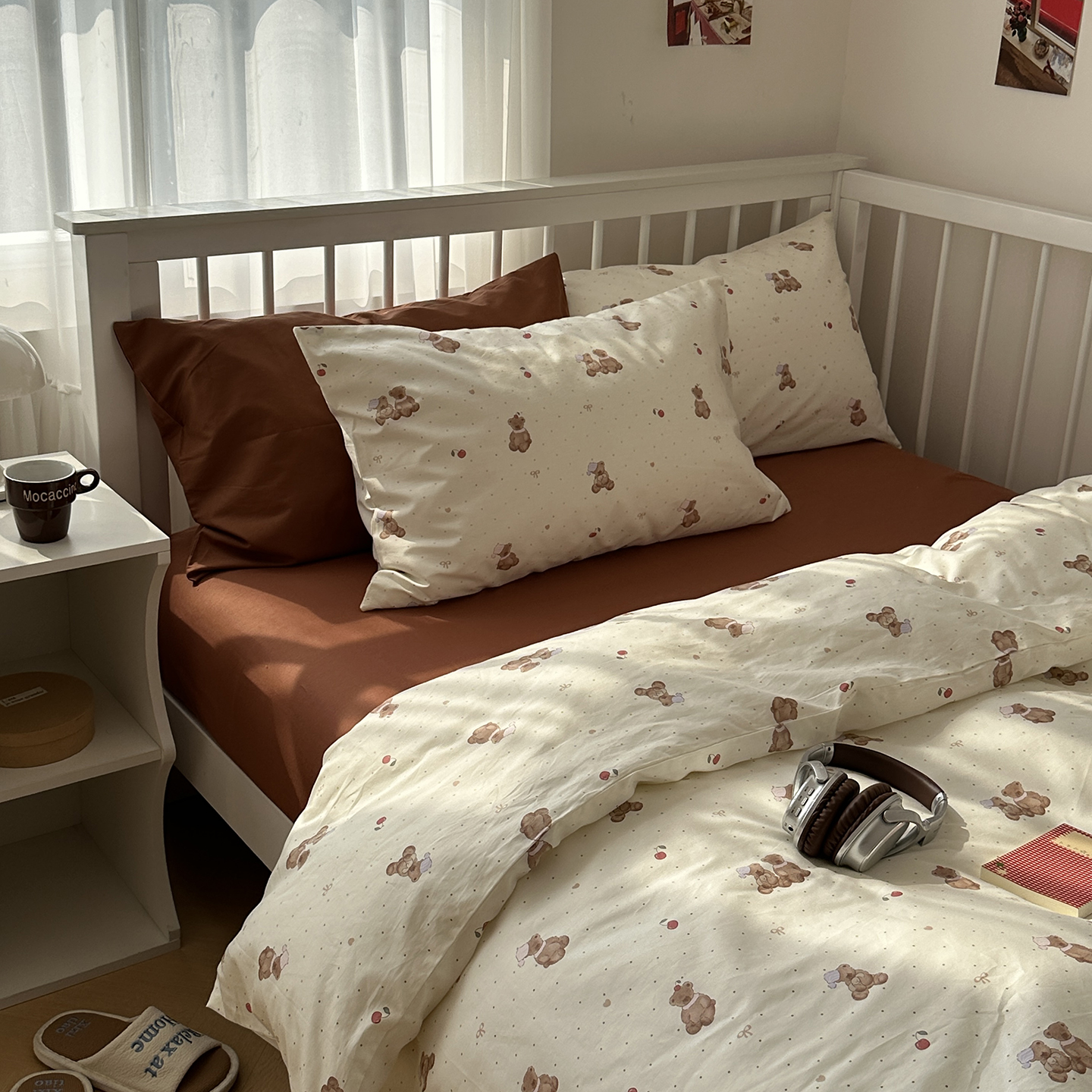 (总)尺素 2025新款纯棉卡通ins风四件套可爱少女风全棉被套纯色1.8床笠加大床单学生1.2三件套,告白熊--浅蓝,格调粉--奶黄,格调粉--桃粉,蓝白情书--浅蓝,清梦--冰沙绿,清梦--浅黄,小熊软糖--焦糖