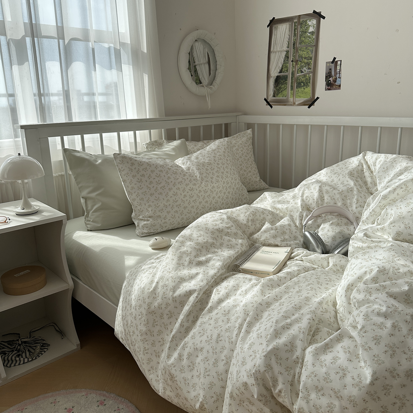 (总)尺素 2026田园小清新纯棉四件套出口韩国ins博主风全棉被套纯色加大床单1.8床笠印花枕套学生宿舍三件套,春不晚 桃粉,花似锦 奶白,紫鸢千夏紫