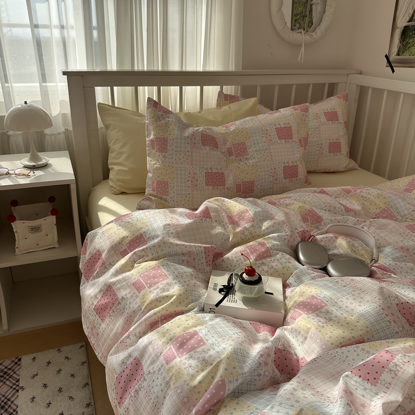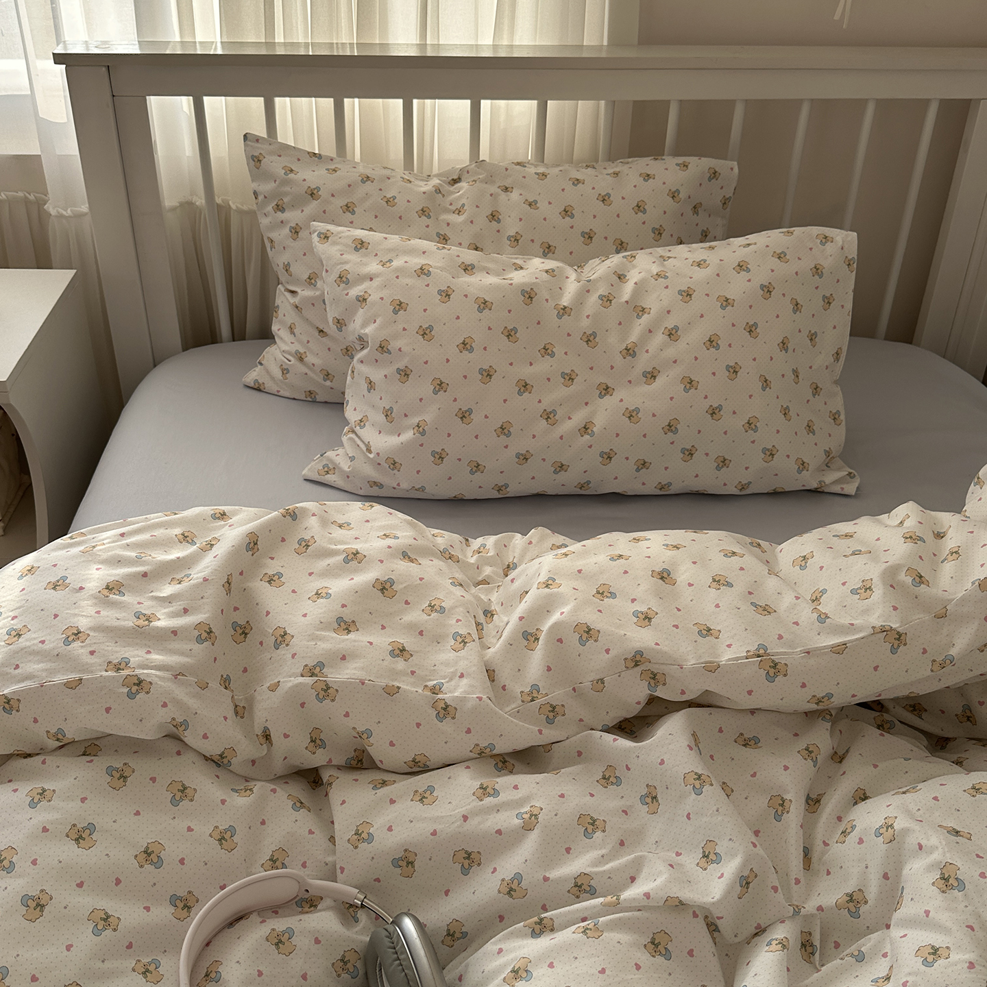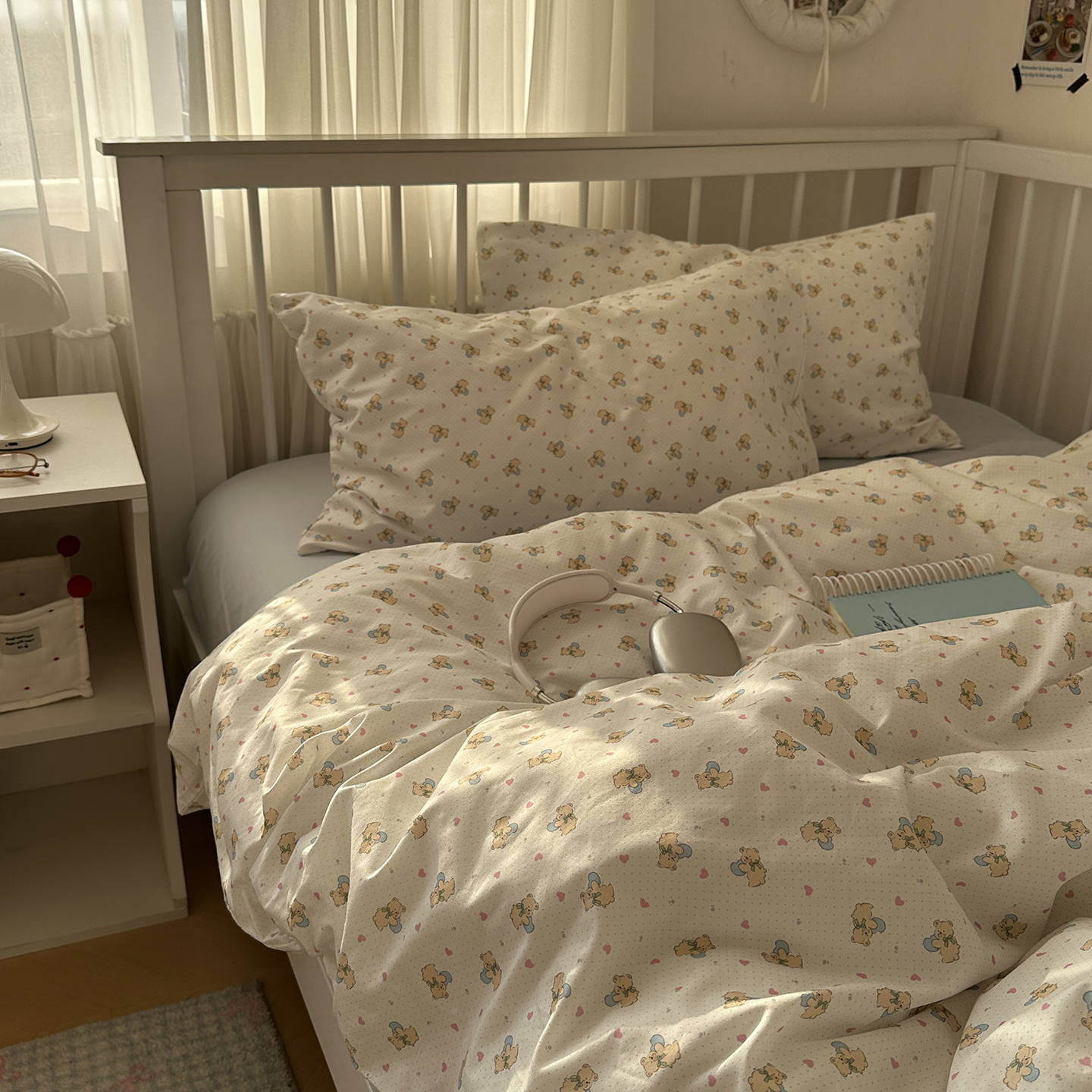 (总)尺素 2026新款纯棉卡通ins风四件套可爱少女风全棉被套纯色1.8床笠加大床单学生1.2三件套,告白熊--浅蓝,格调粉--奶黄,格调粉--桃粉,蓝白情书--浅蓝,清梦--冰沙绿,清梦--浅黄,小熊软糖--焦糖