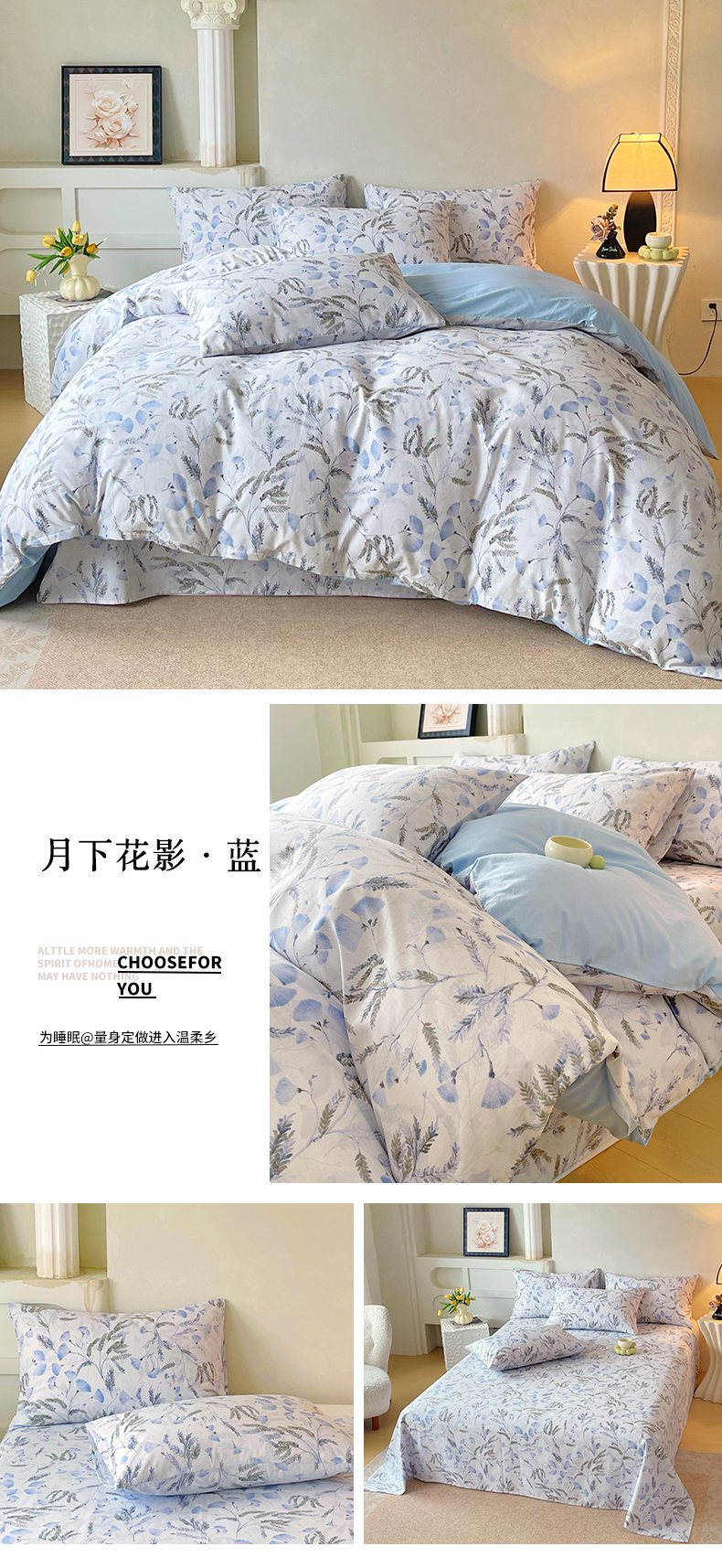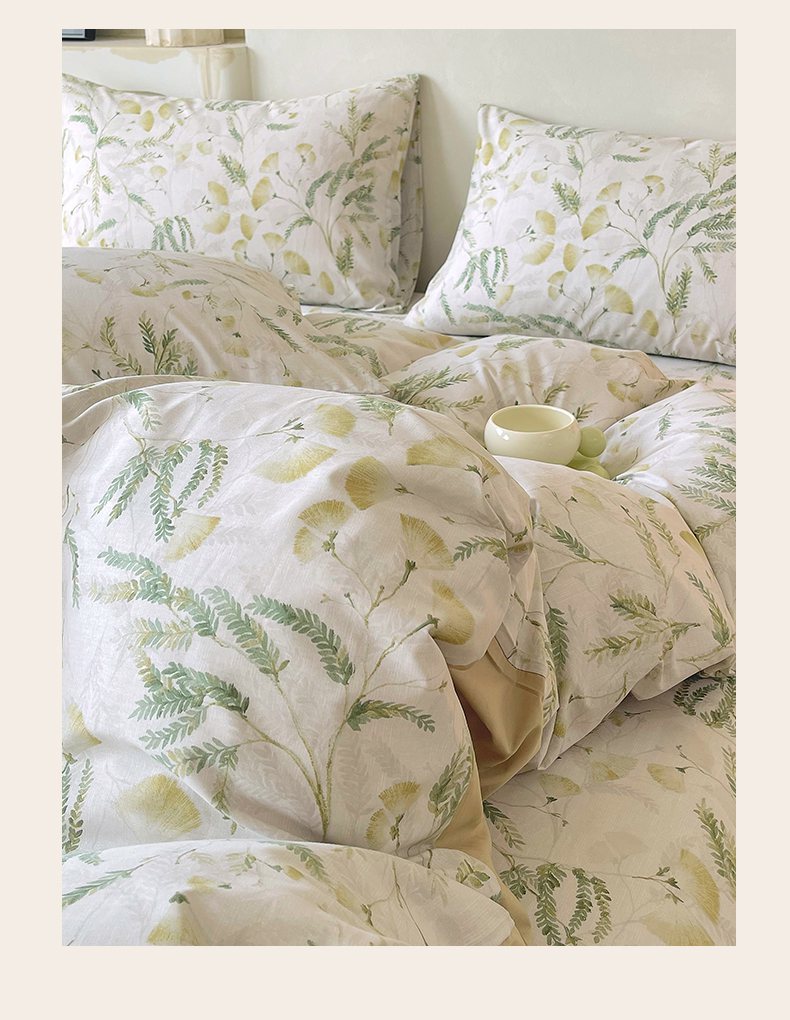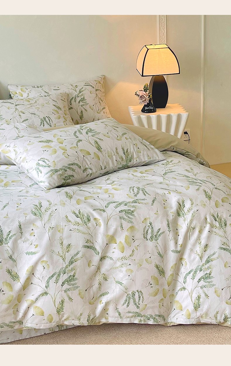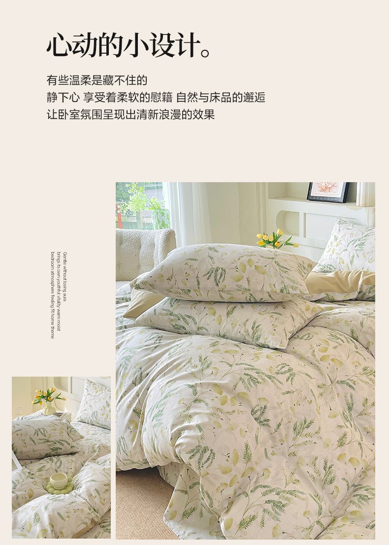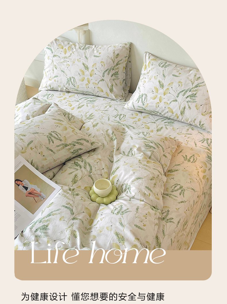 当前位置: 91家纺网 > 商品网购 > 床品套件 > 四件套 > 全棉普通四件套 > 金鑫汇家纺 2026新款全棉印花小清新四件套系列-可露丽 月下花影-绿