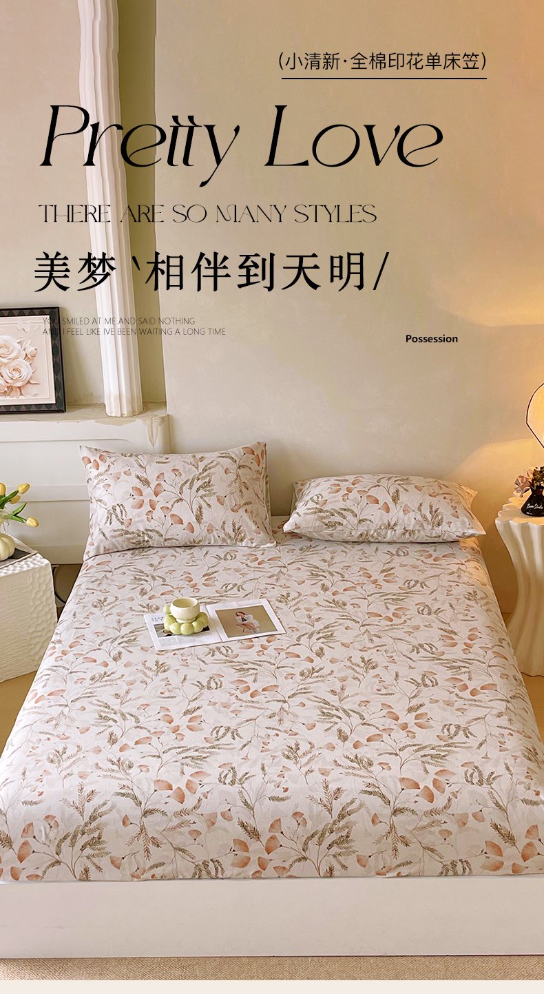 (总)金鑫汇家纺 2026新款全棉印花小清新单品床笠系列-可露丽,海盐可露丽,浅咖可露丽,浅绿可露丽,月下花影-桔,月下花影-蓝,月下花影-绿
