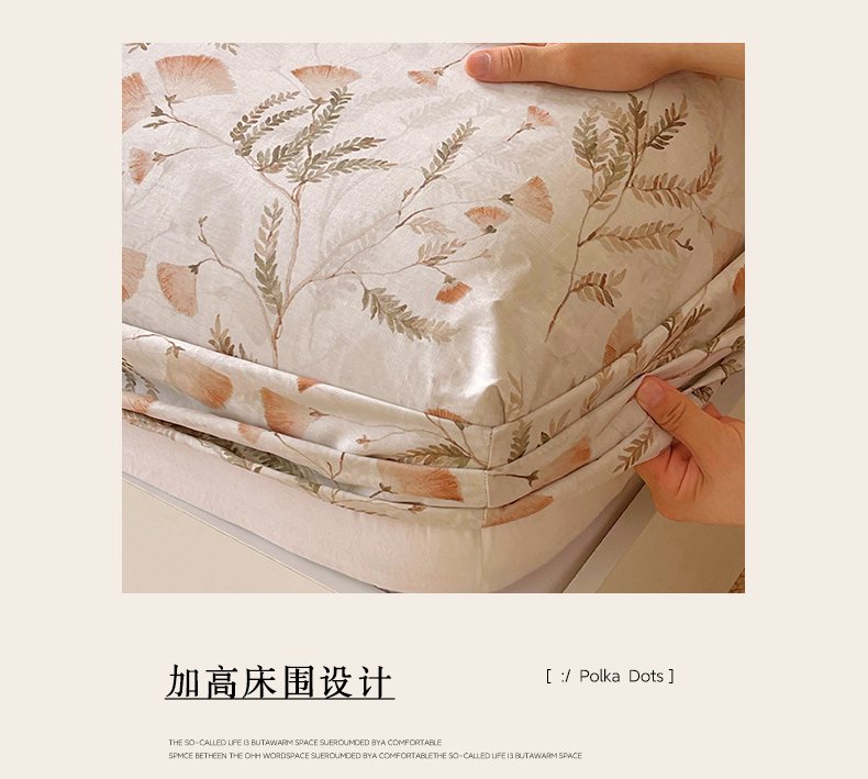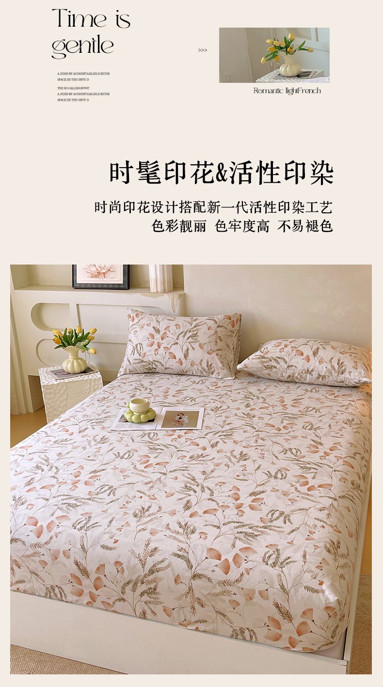 金鑫汇家纺 2026新款全棉印花小清新单品床笠系列-可露丽 月下花影-桔