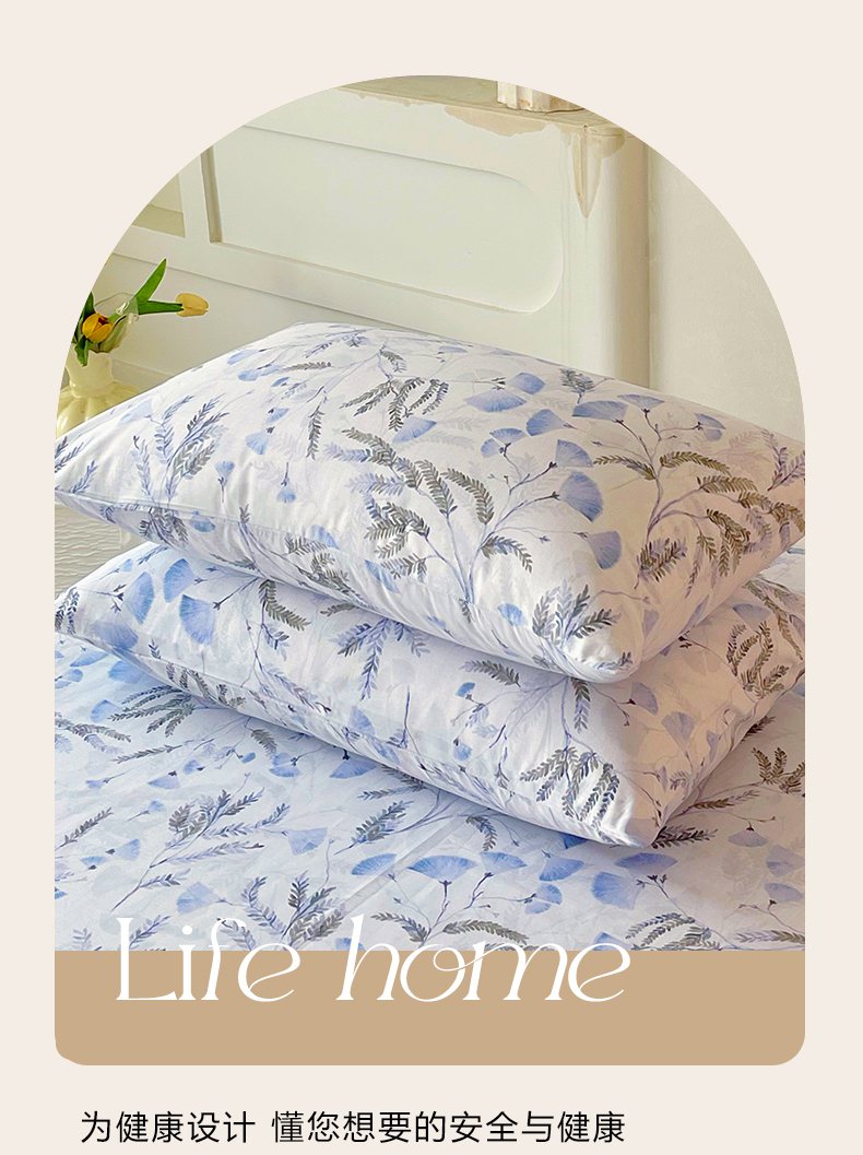 金鑫汇家纺 2026新款全棉印花小清新单枕套系列-可露丽 月下花影-蓝