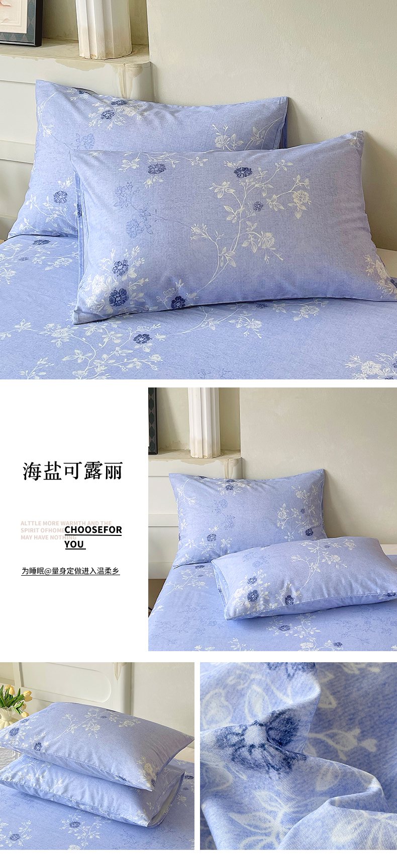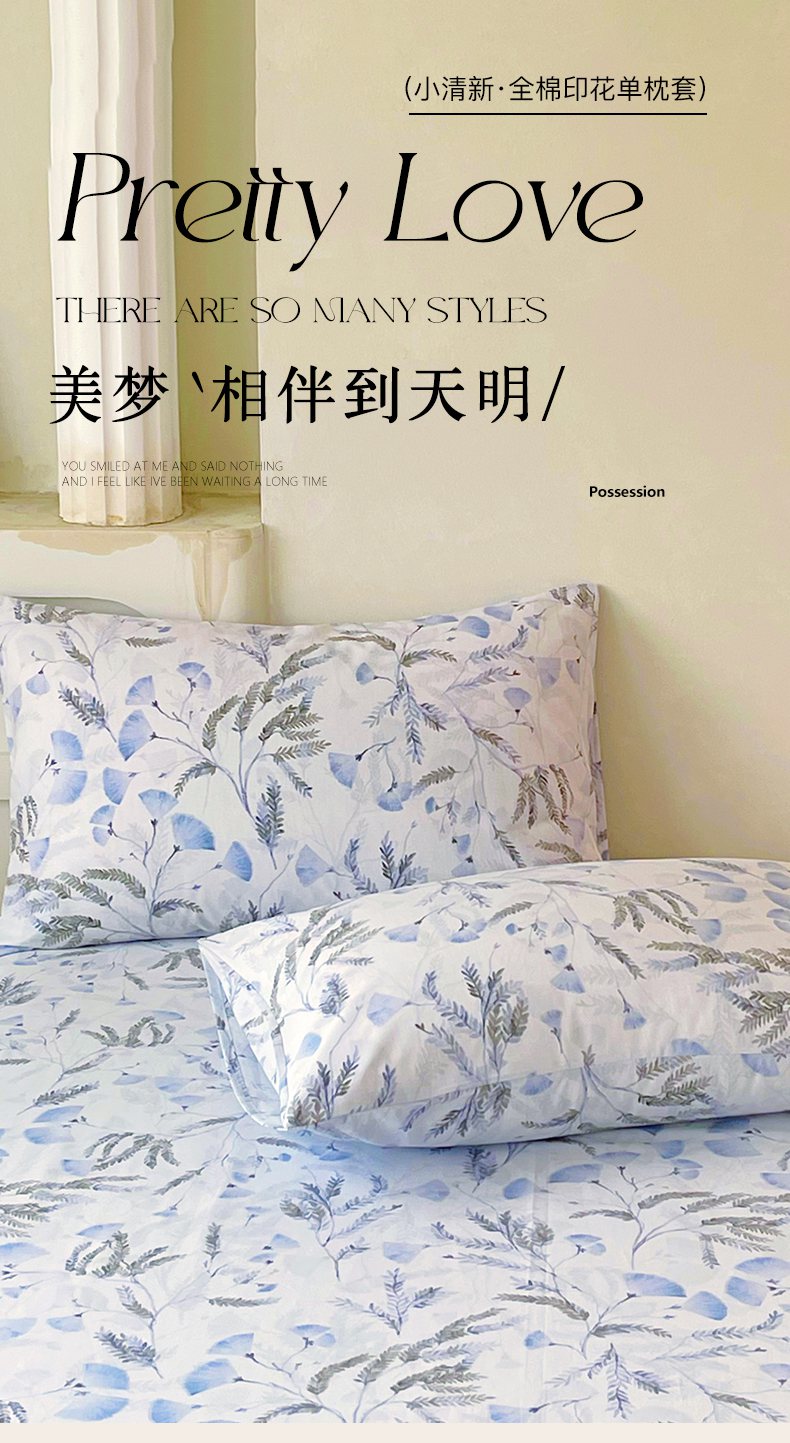 (总)金鑫汇家纺 2026新款全棉印花小清新单枕套系列-可露丽,海盐可露丽,浅咖可露丽,浅绿可露丽,月下花影-桔,月下花影-蓝,月下花影-绿