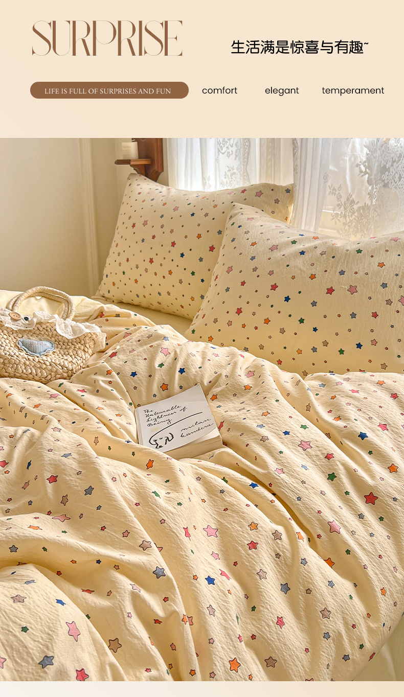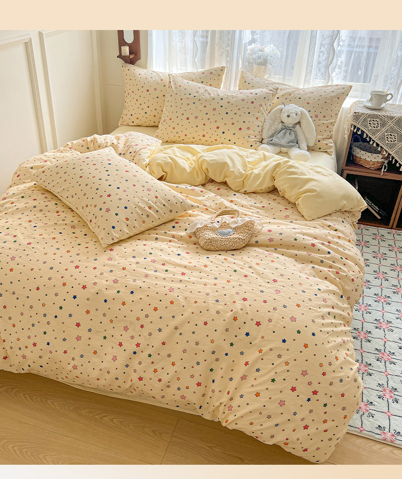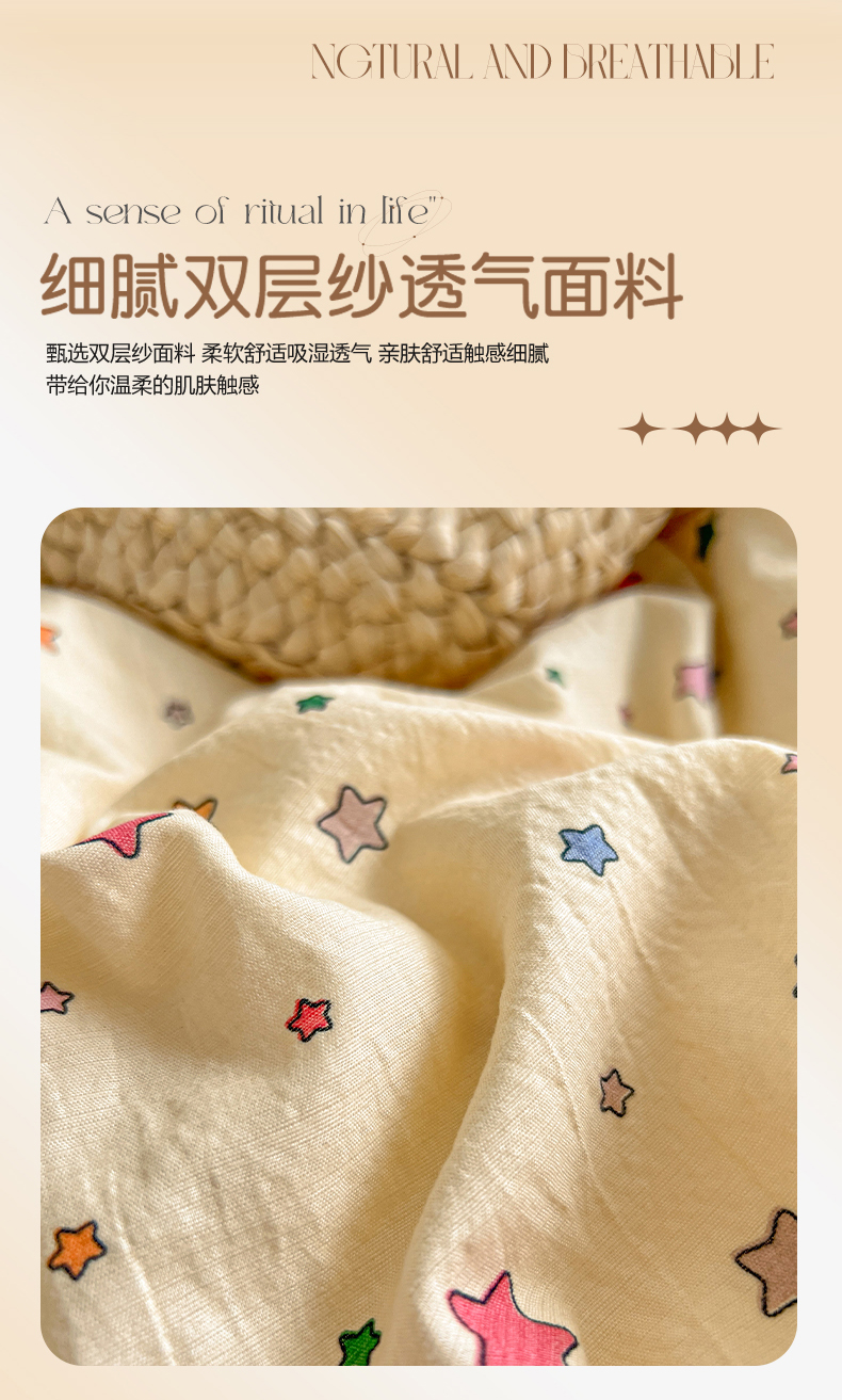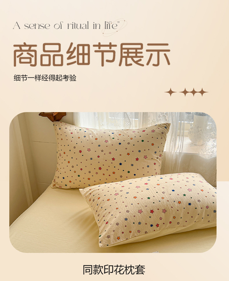 当前位置: 91家纺网 > 商品网购 > 床品套件 > 四件套 > 其它四件套 > 妖妖家纺 2026新款敲可爱的奶呼呼云感双层纱简约四件套系列 星星流光