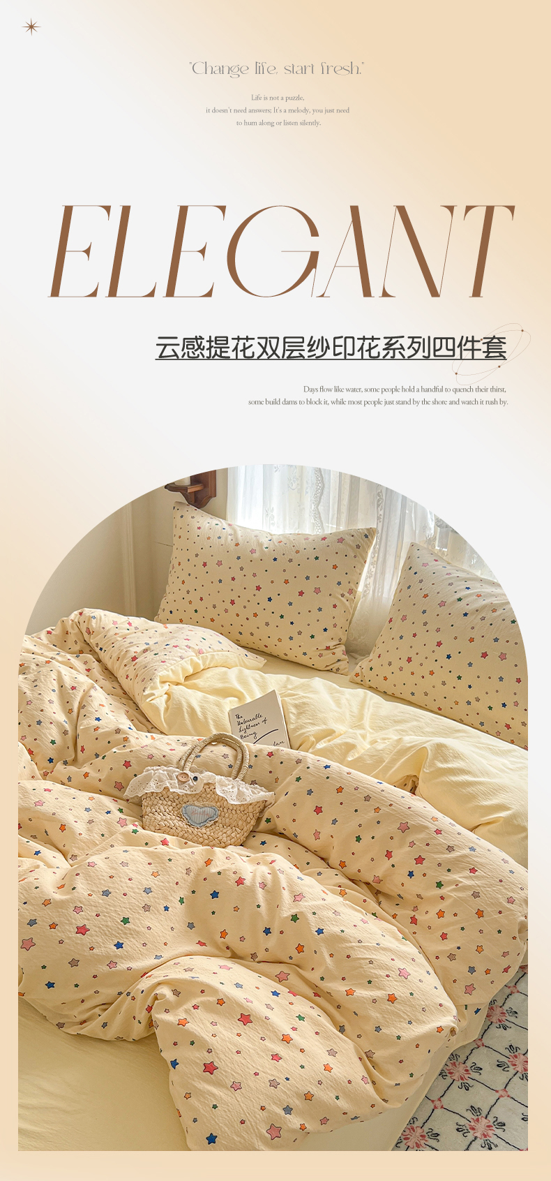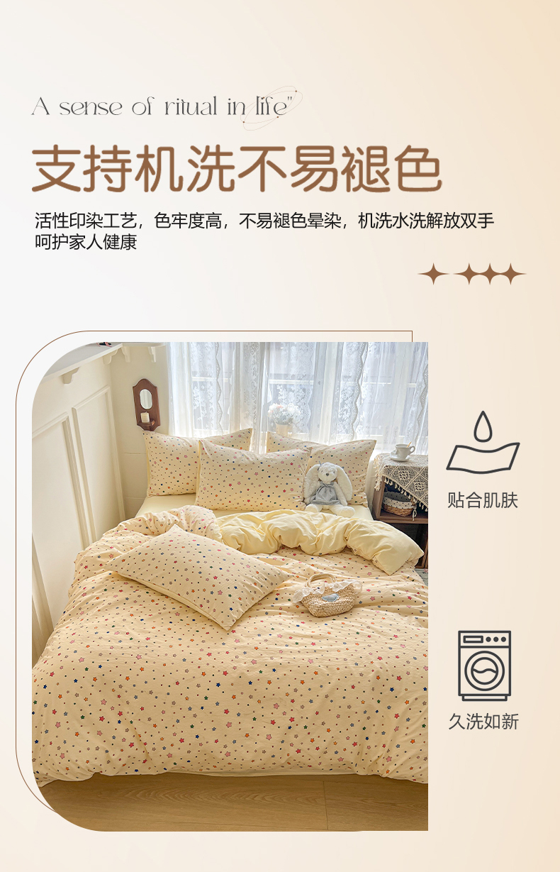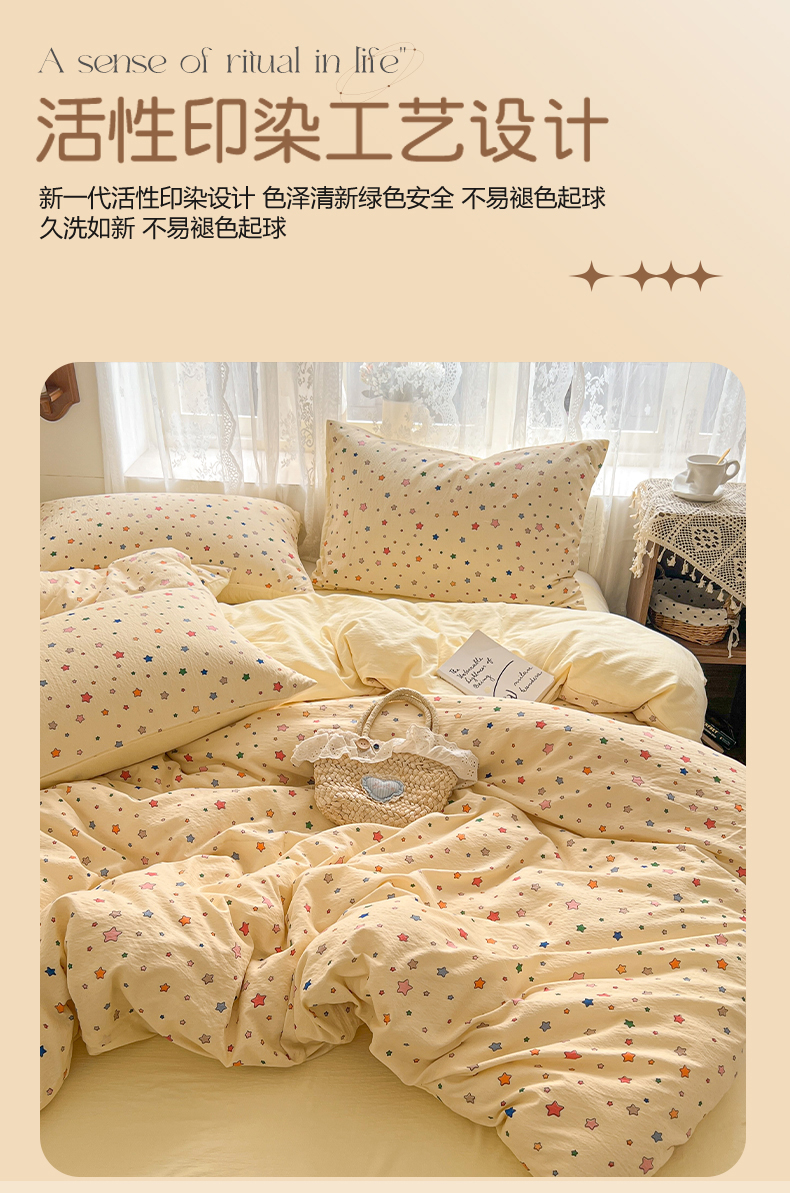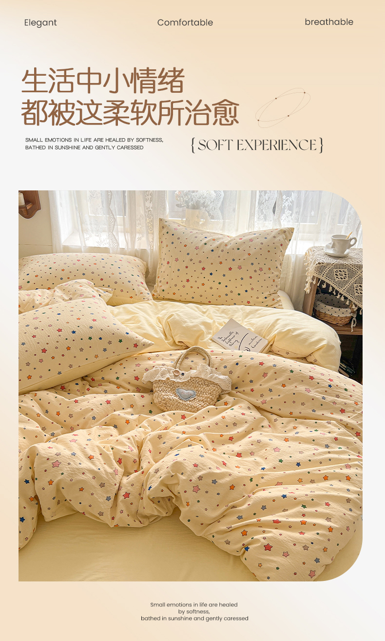 当前位置: 91家纺网 > 商品网购 > 床品套件 > 四件套 > 其它四件套 > 妖妖家纺 2026新款敲可爱的奶呼呼云感双层纱简约四件套系列 星星流光
