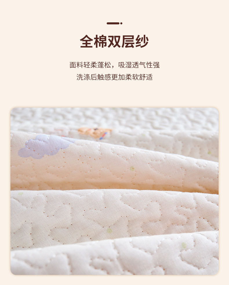 (总)拾小柒 2026年新款全棉双层纱床护垫纯棉防滑床盖床褥子软床垫,豆豆好朋友,咕噜派米,鲤安,萌趣森林粉,萌趣森林蓝