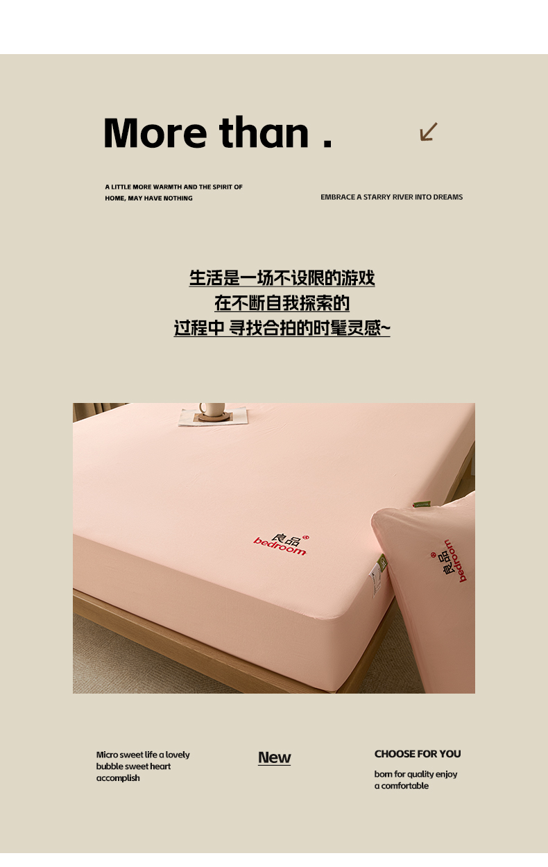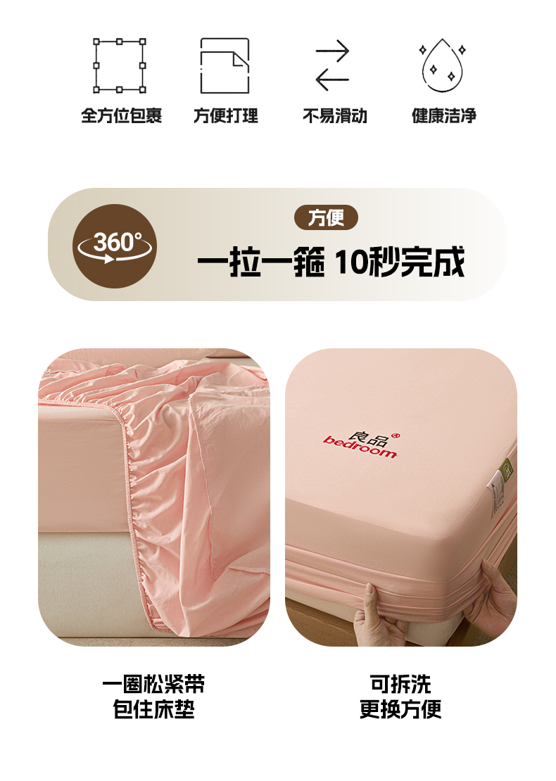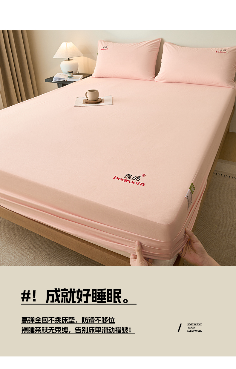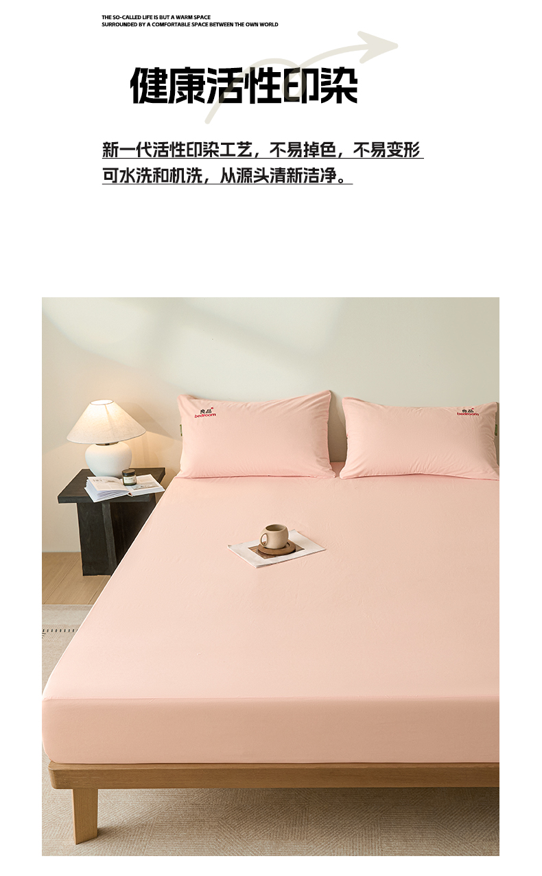 • 91家纺网 家纺一手货源 找家纺 芬晴家纺 2026新款纯棉密条+纯色单层床笠 纯色-嫩粉