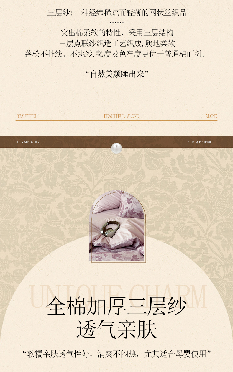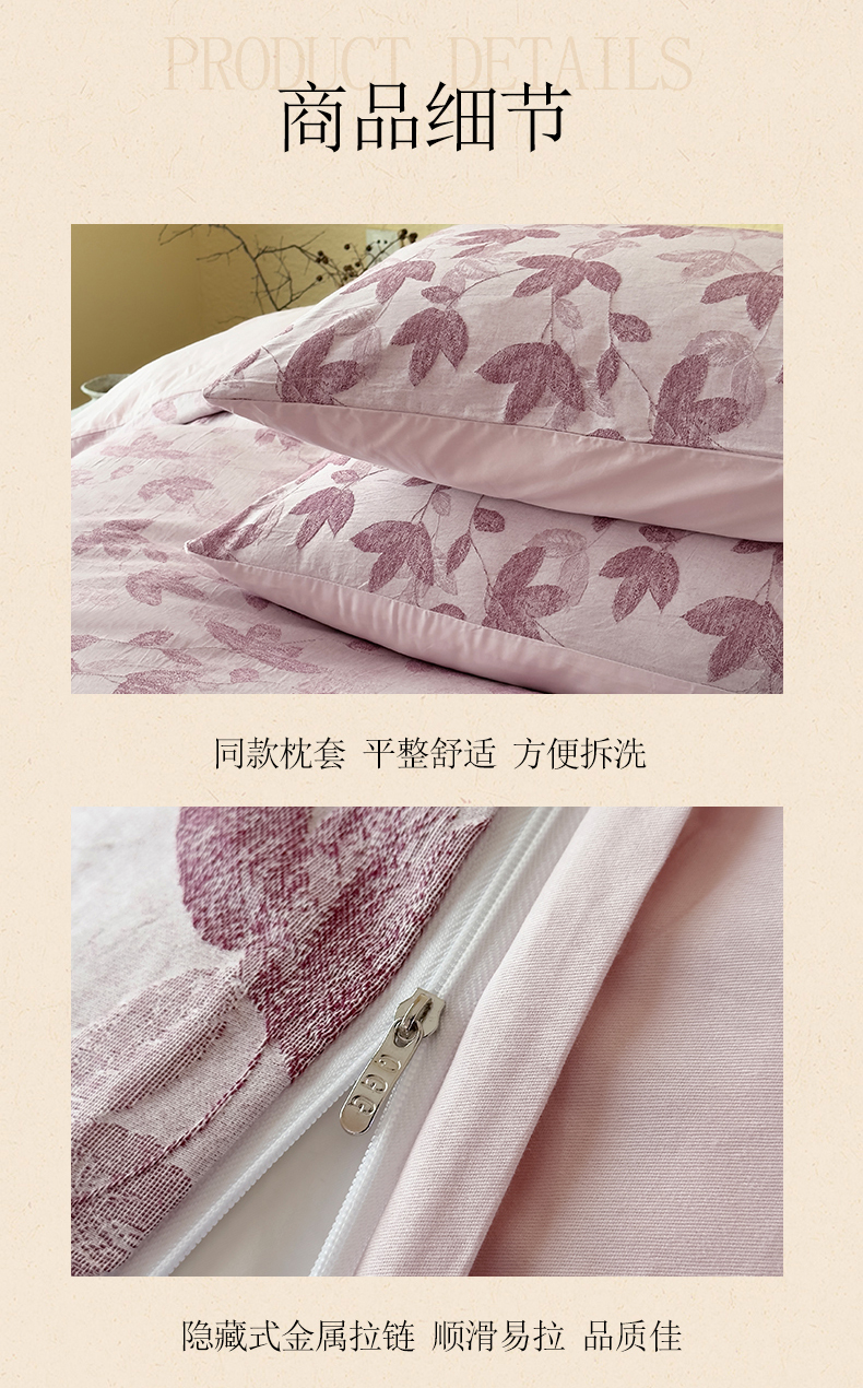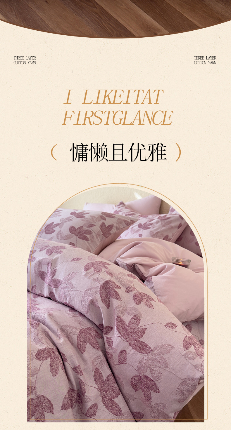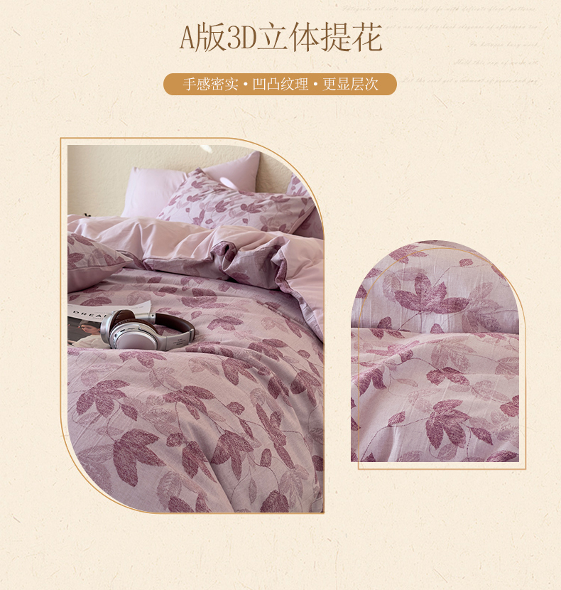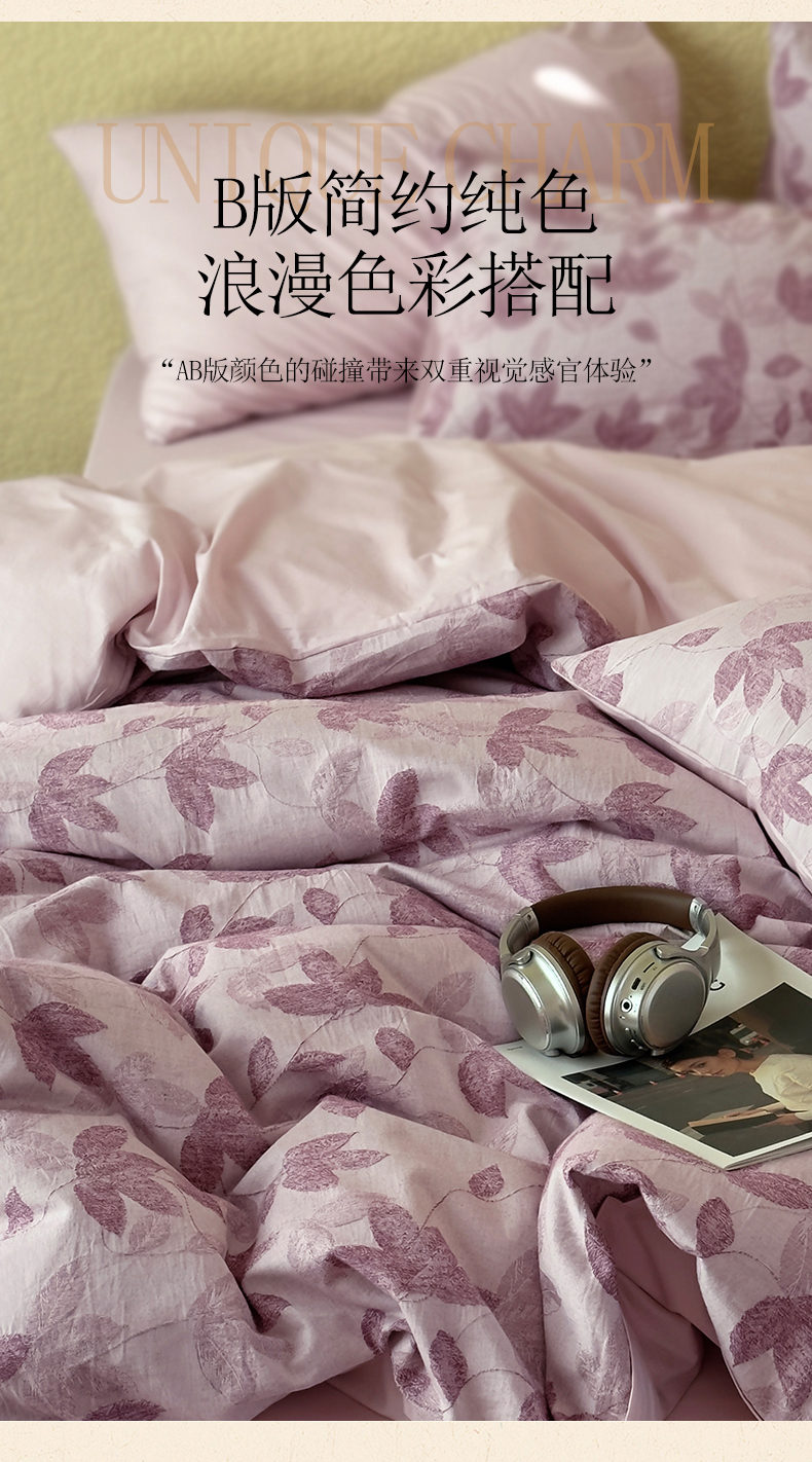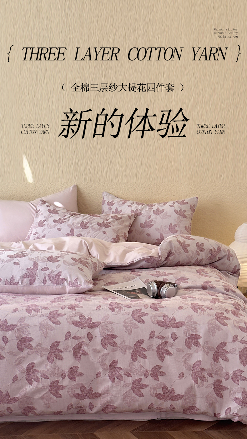 当前位置: 91家纺网 > 商品网购 > 床品套件 > 四件套 > 全棉普通四件套 > 琪格格纺织 2026新款60s纯棉加厚三层纱系列四件套 三层纱 枫韵-紫