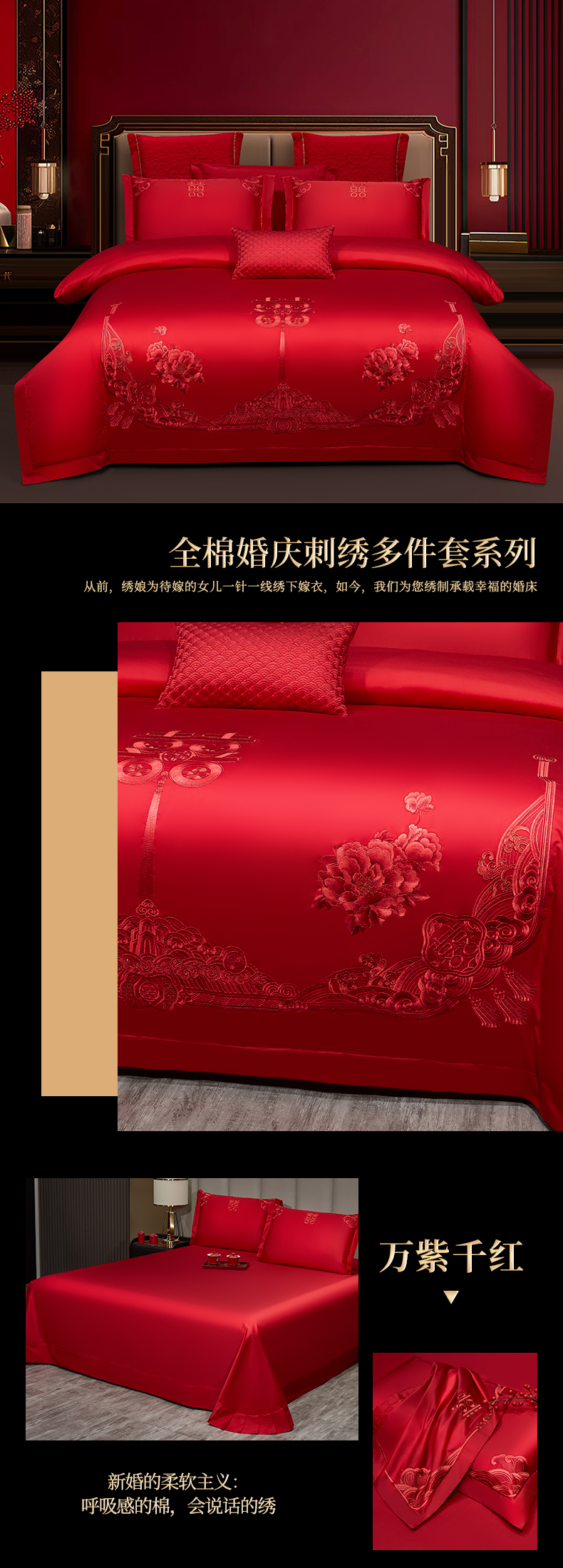 当前位置: 91家纺网 > 商品网购 > 床品套件 > 四件套 > 婚庆四件套 > 浩情国际婚庆供货中心 2026新款100%全棉长绒棉纯棉婚庆四件套结婚刺绣六件套多件套长期供货 (提供买家秀) 万紫千红