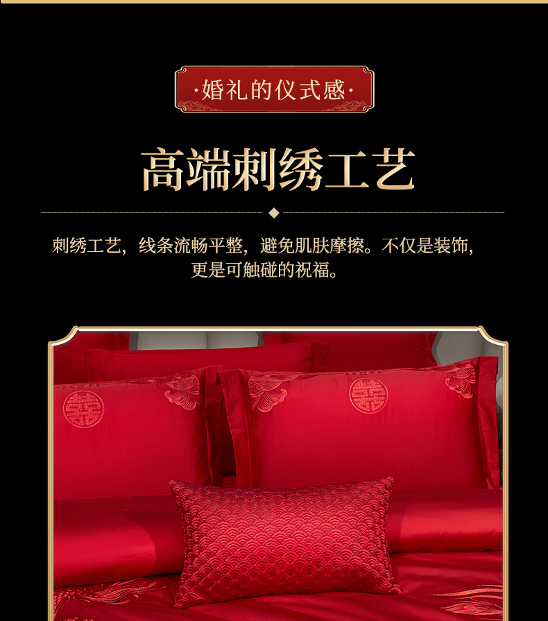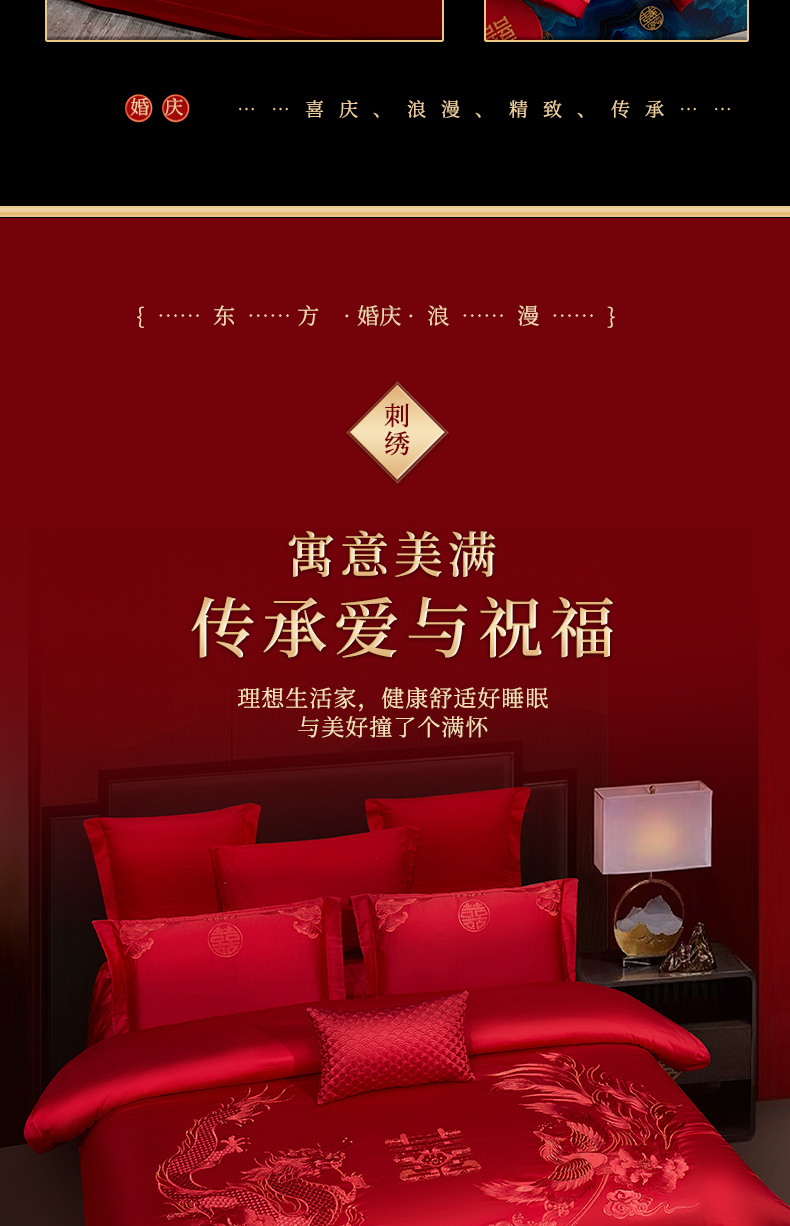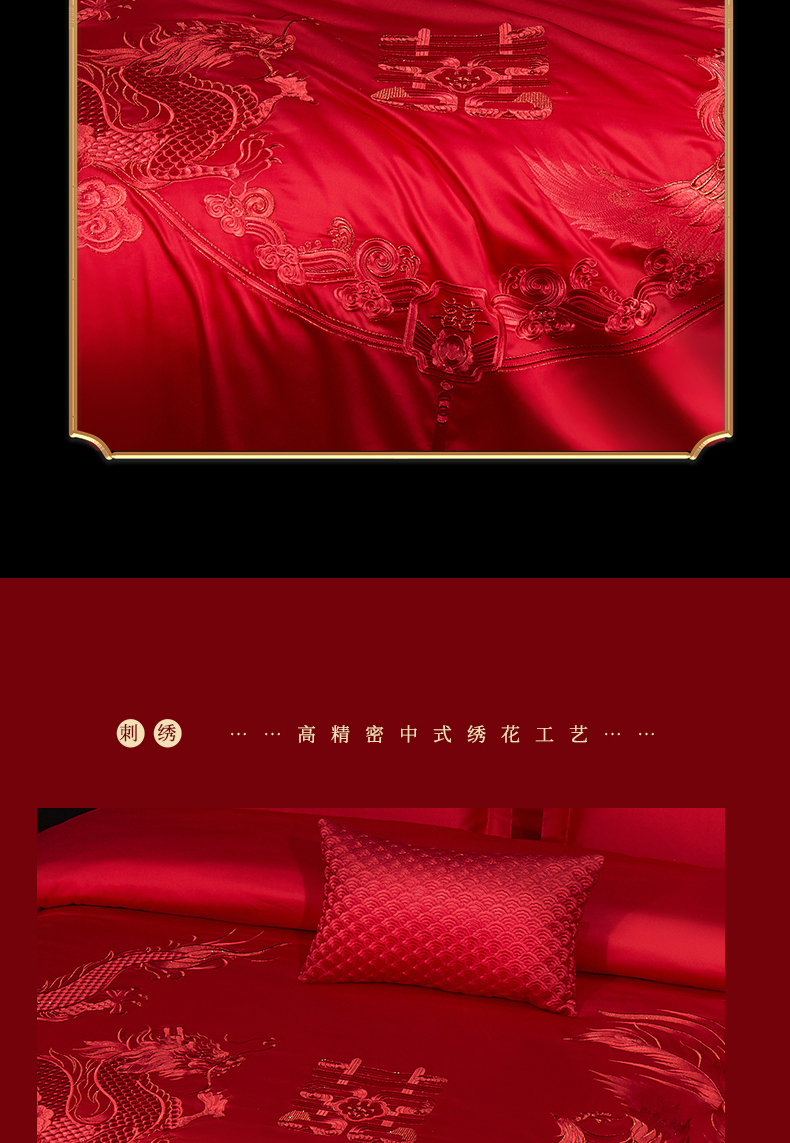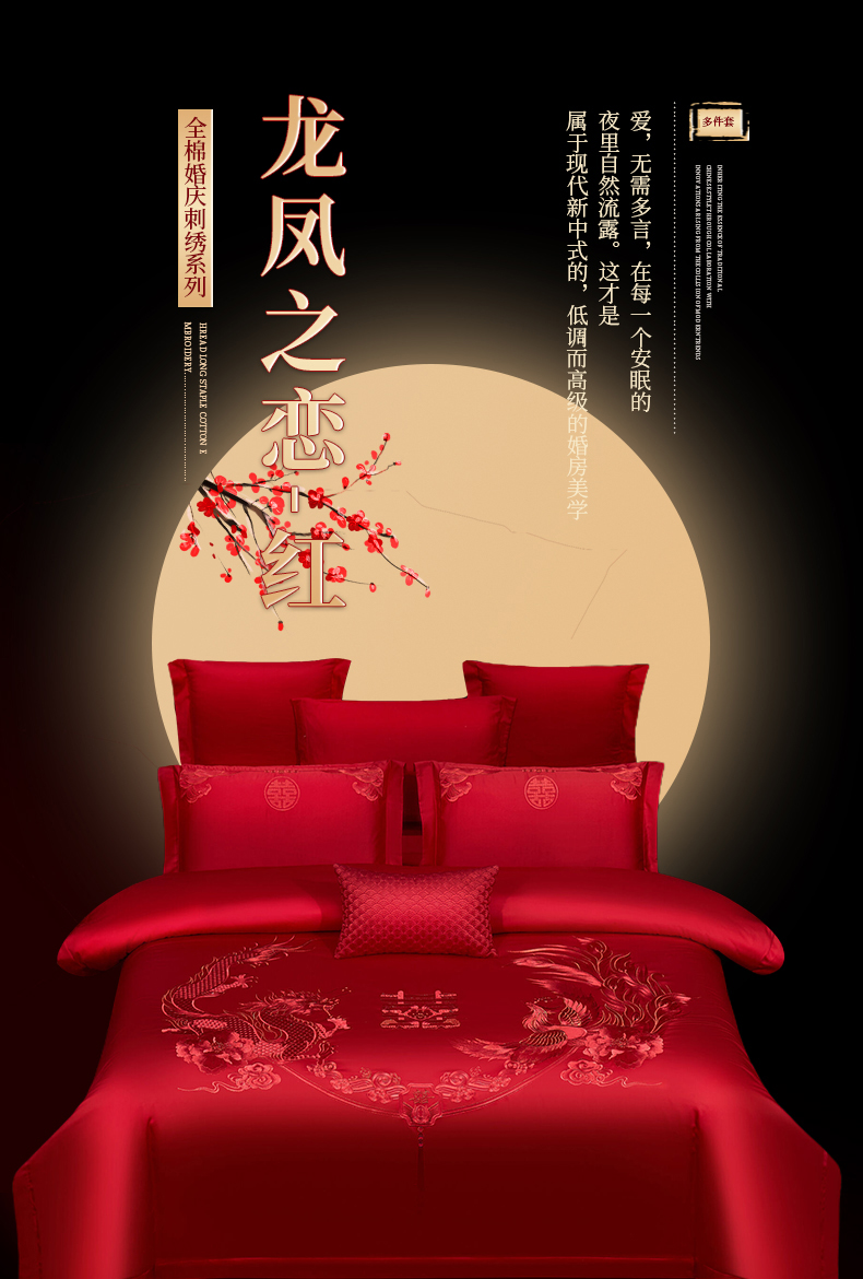 当前位置: 91家纺网 > 商品网购 > 床品套件 > 四件套 > 婚庆四件套 > 浩情国际婚庆供货中心 2026新款100%全棉长绒棉纯棉婚庆四件套结婚刺绣六件套多件套长期供货 (提供买家秀) 龙凤之恋-红