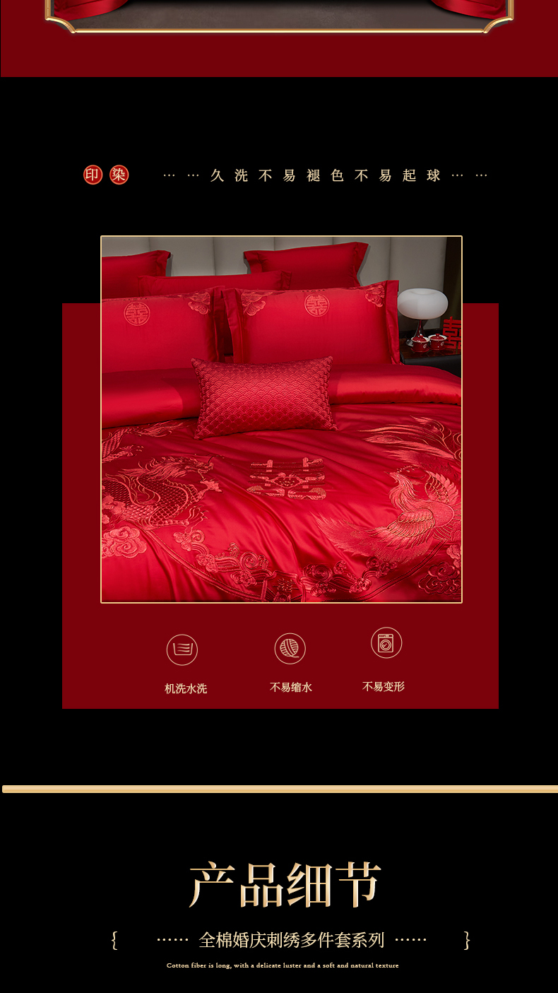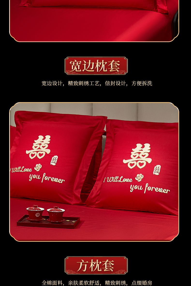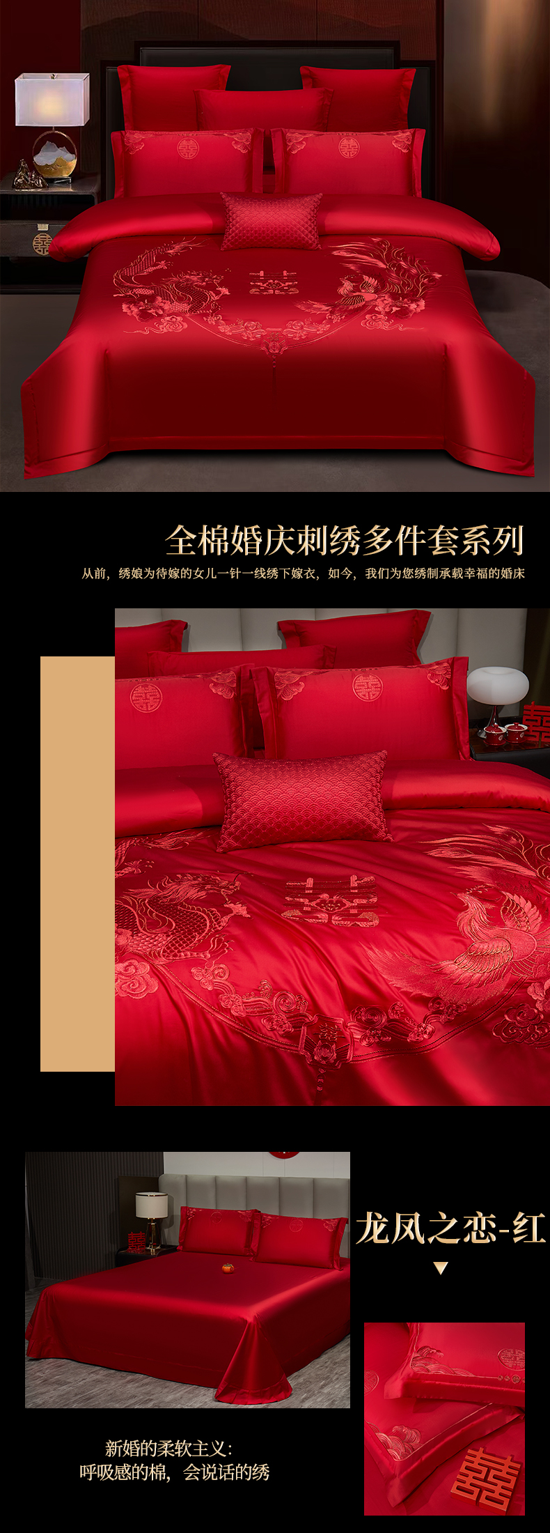 当前位置: 91家纺网 > 商品网购 > 床品套件 > 四件套 > 婚庆四件套 > 浩情国际婚庆供货中心 2026新款100%全棉长绒棉纯棉婚庆四件套结婚刺绣六件套多件套长期供货 (提供买家秀) 龙凤之恋-红