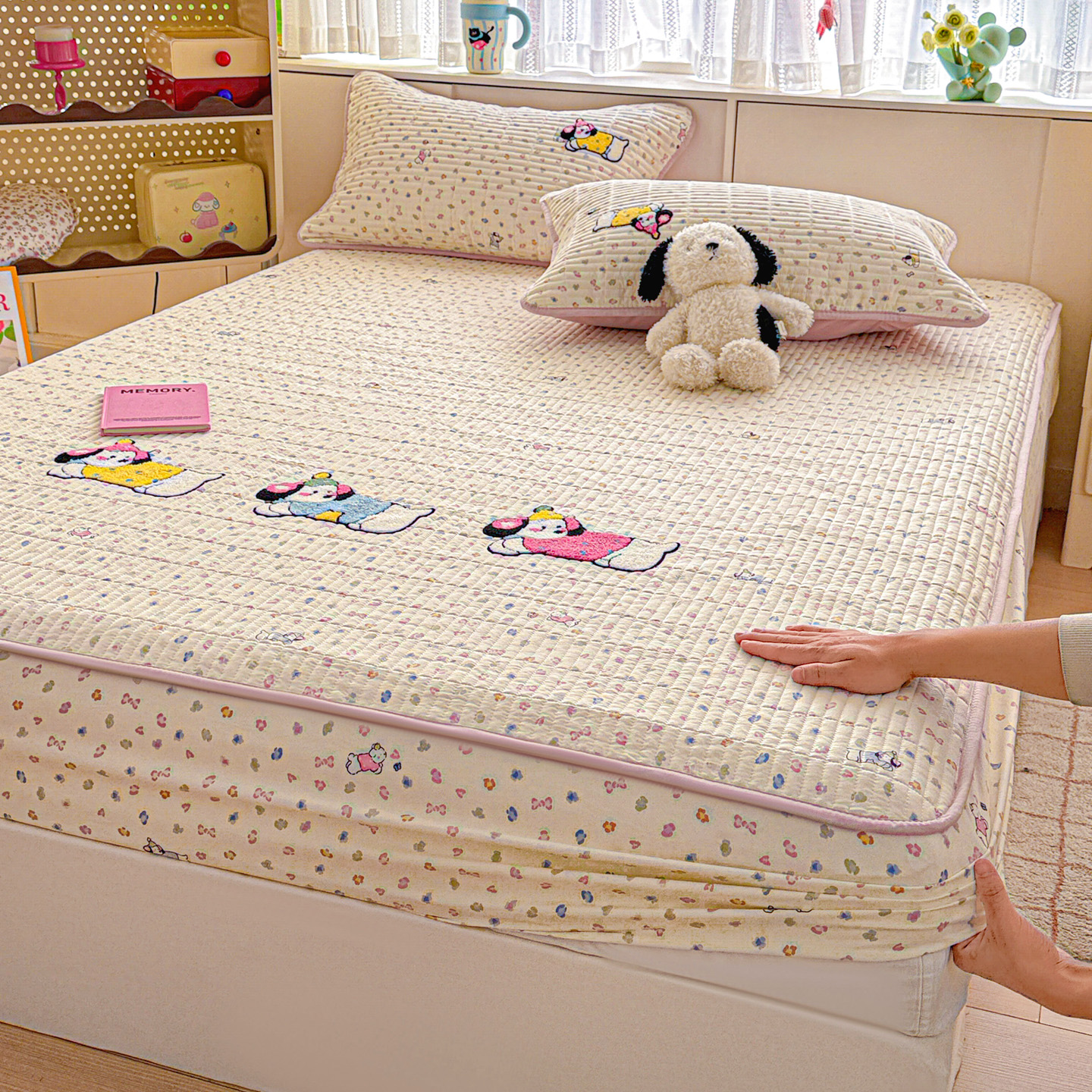 (总)富米莱单品馆 2026新款仿棉小清新夹棉毛巾绣四季通用学生薄款床垫床褥三件套一跑量款,安妮女孩,豹纹蝴蝶结,豹纹猫,嗨嗨兔,可爱小象,梦幻乐园,奶味狗狗,小新日记,星星伙伴