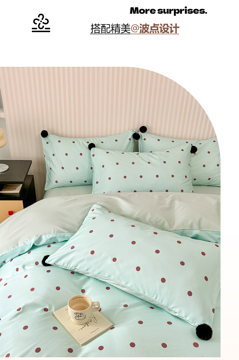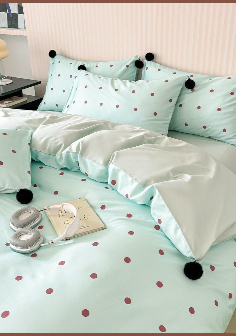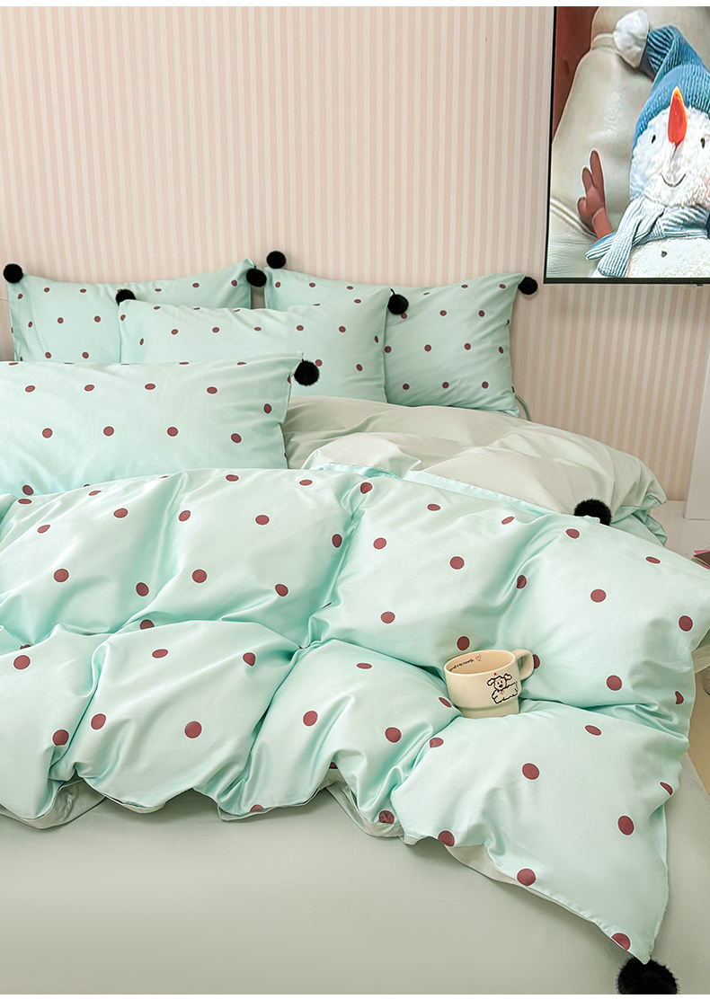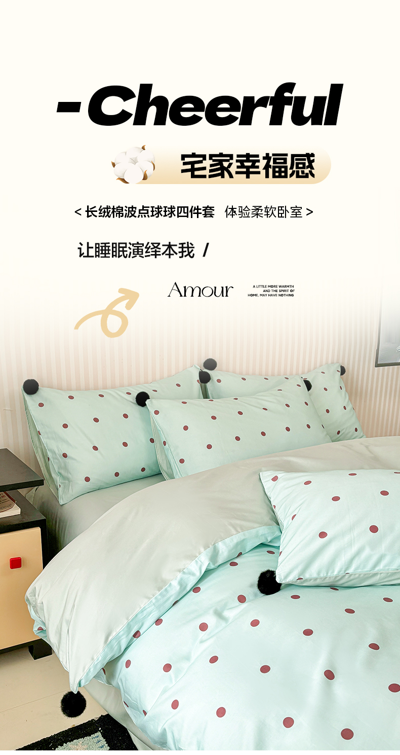 (总)雅居纺家纺 2026新款50长绒棉波点球球四件套,白咖球球,彩色球球,粉点球球,蓝点球球