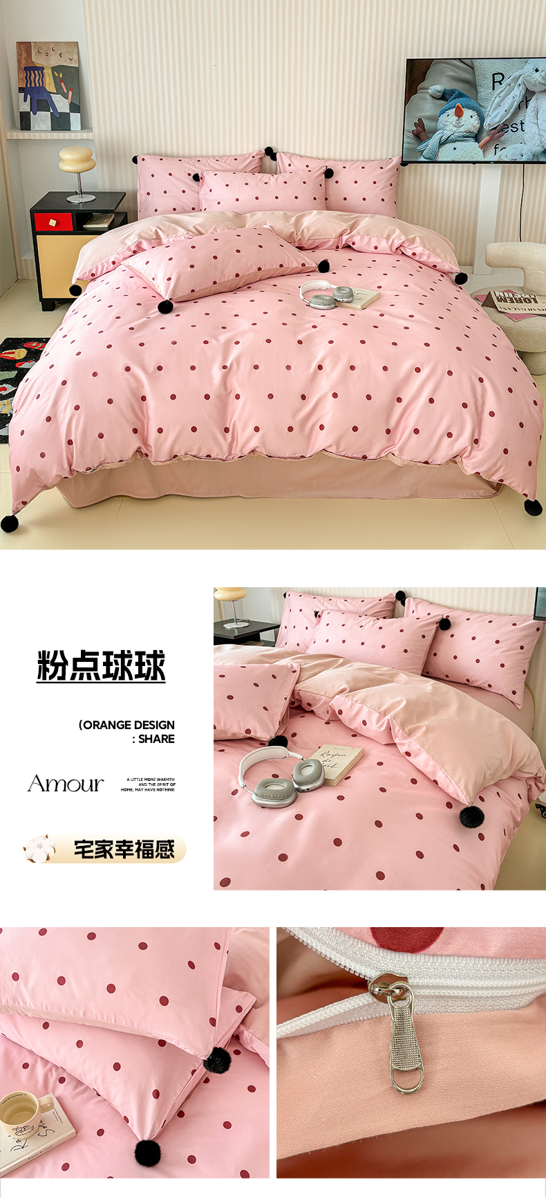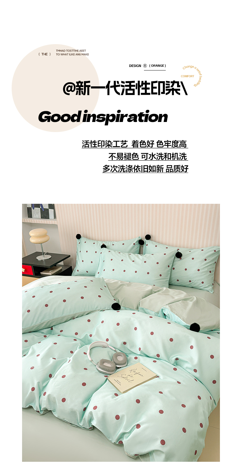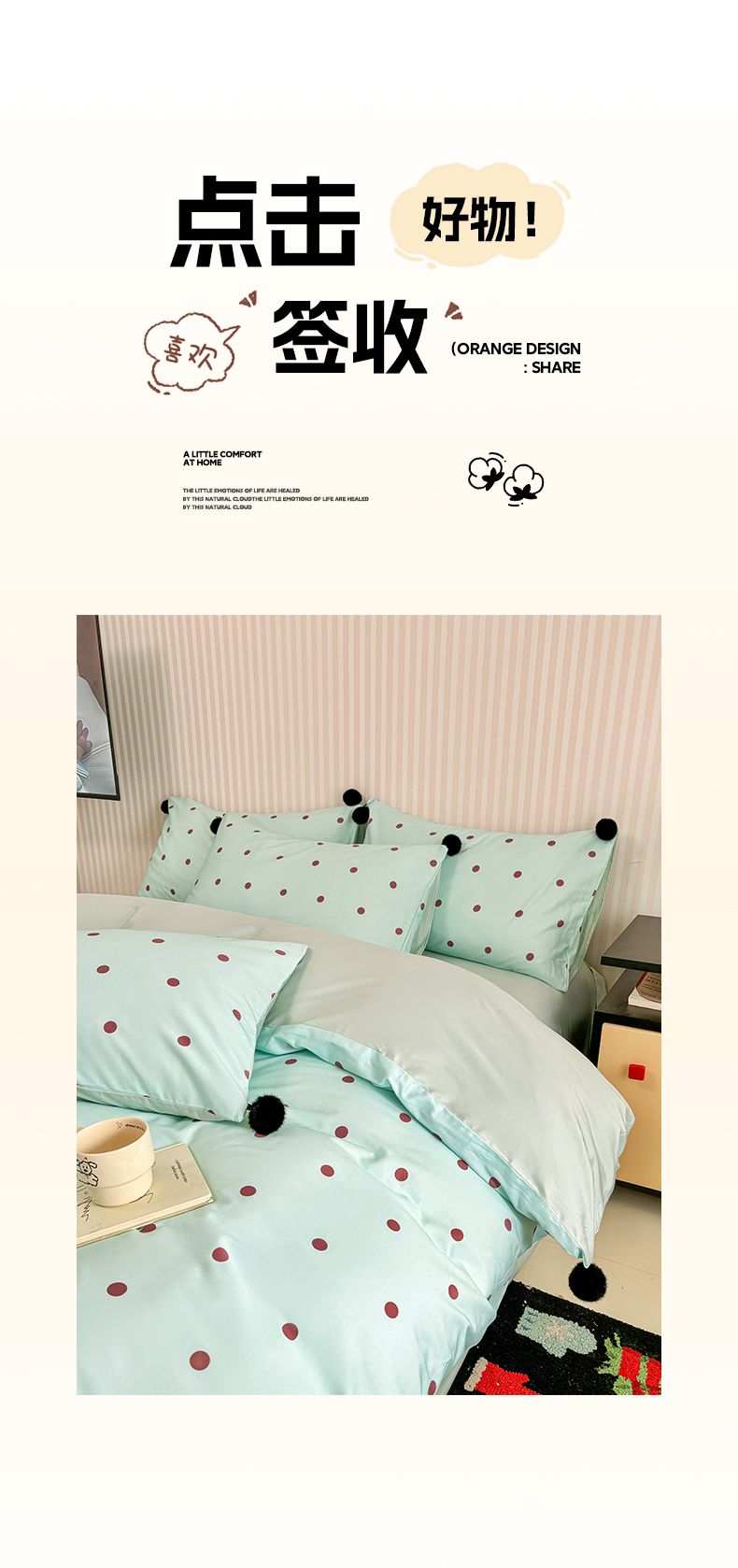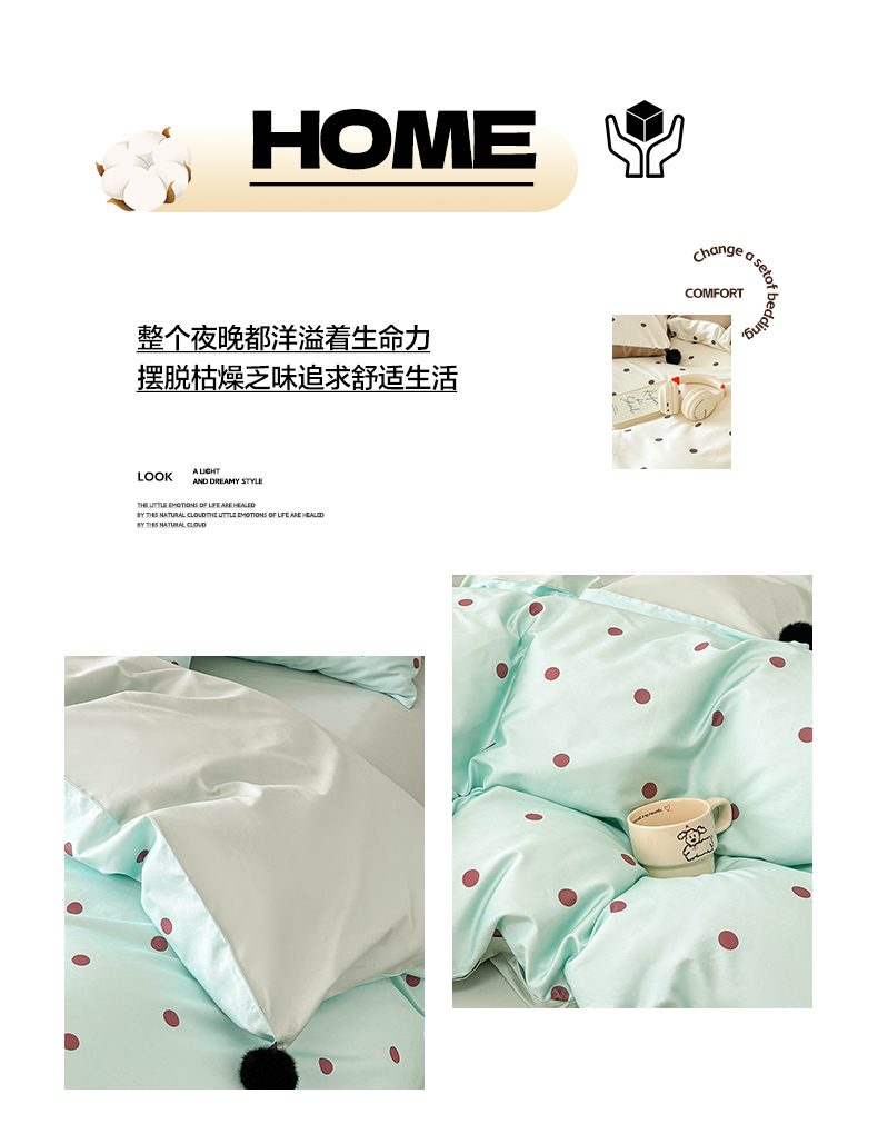 (总)雅居纺家纺 2026新款50长绒棉波点球球四件套,白咖球球,彩色球球,粉点球球,蓝点球球