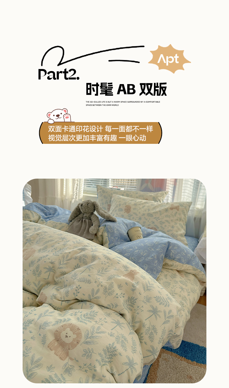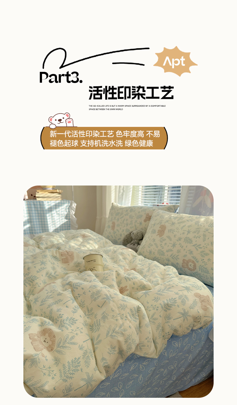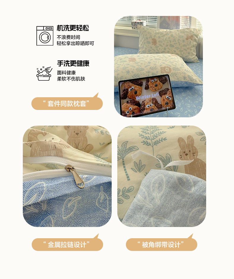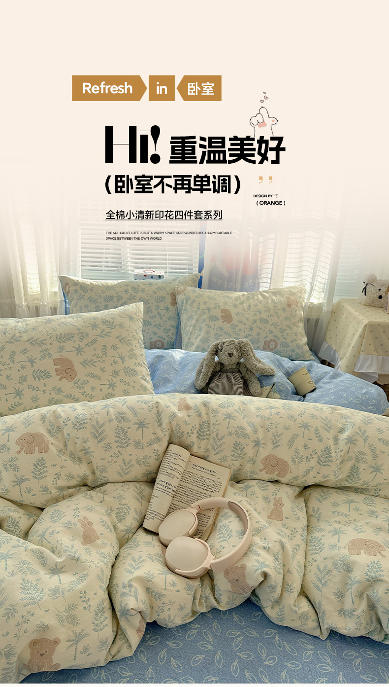 商品名称:雅居纺家纺 2026新款全棉小清新印花四件套 森林乐园