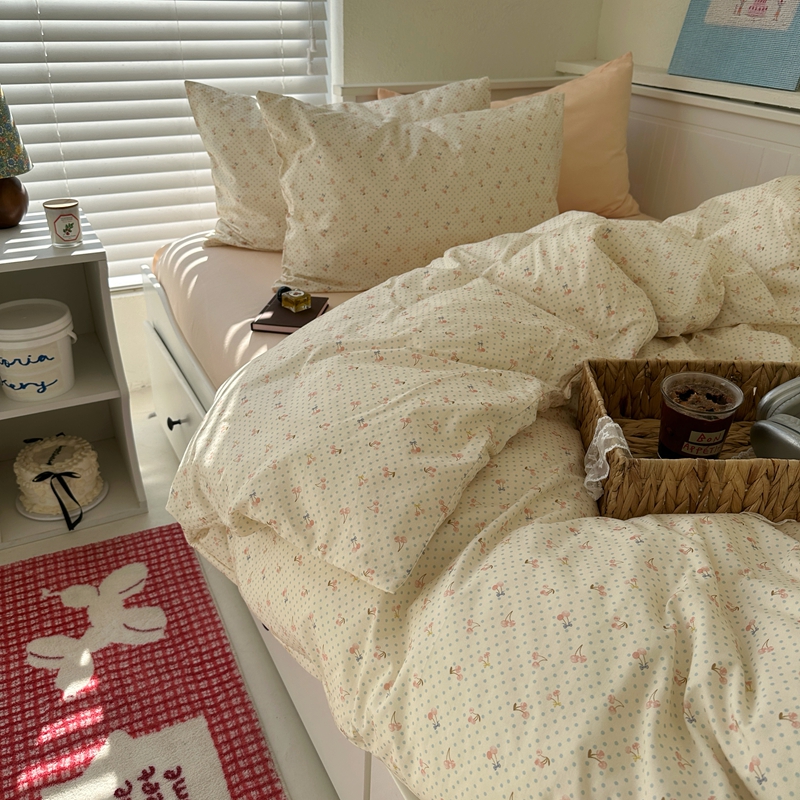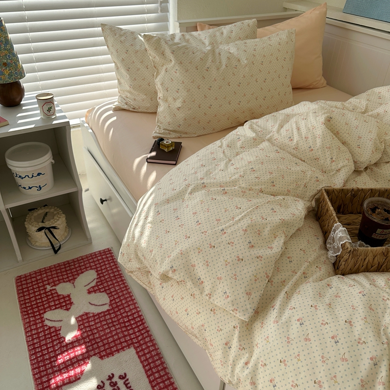 (总)尺素 2026田园小清新纯棉四件套出口韩国ins博主风全棉被套纯色加大床单1.8床笠印花枕套学生宿舍三件套,春不晚 桃粉,花似锦 奶白,紫鸢千夏紫