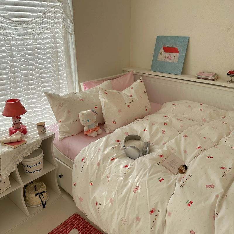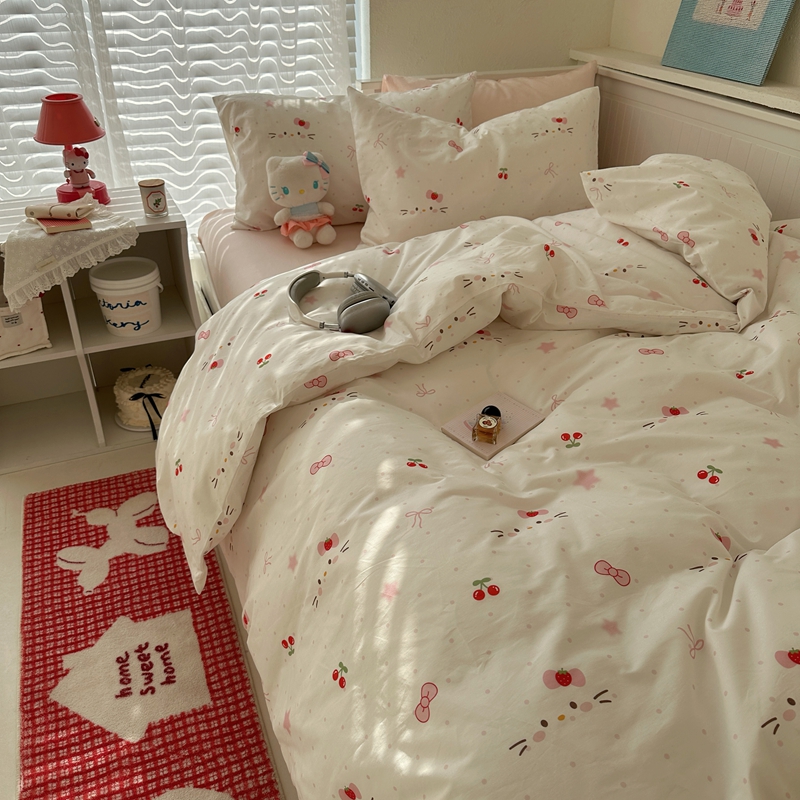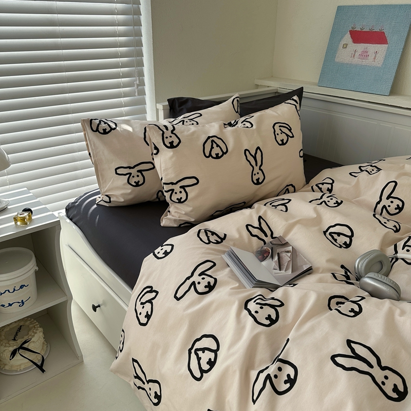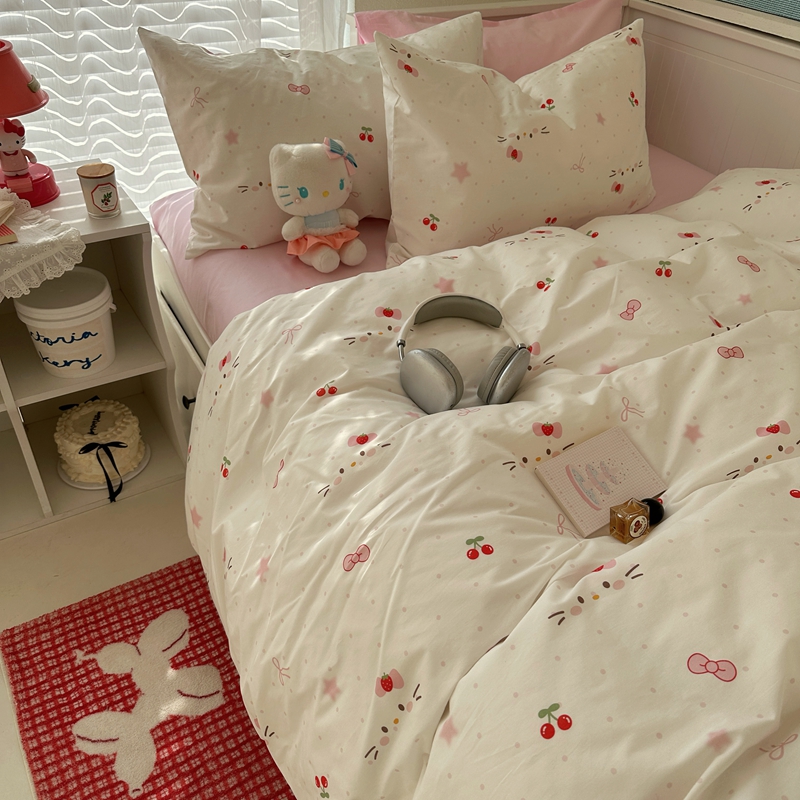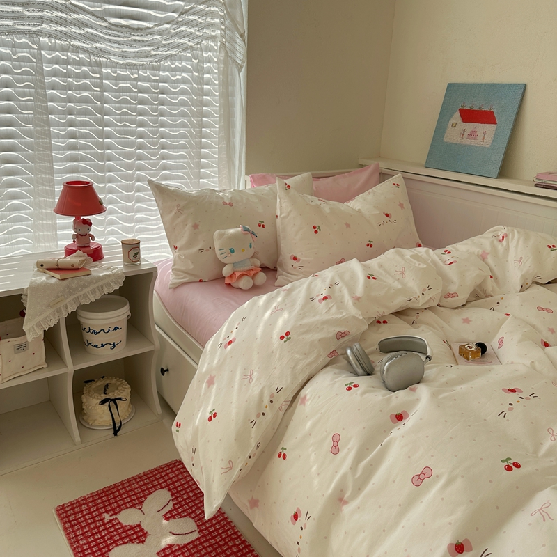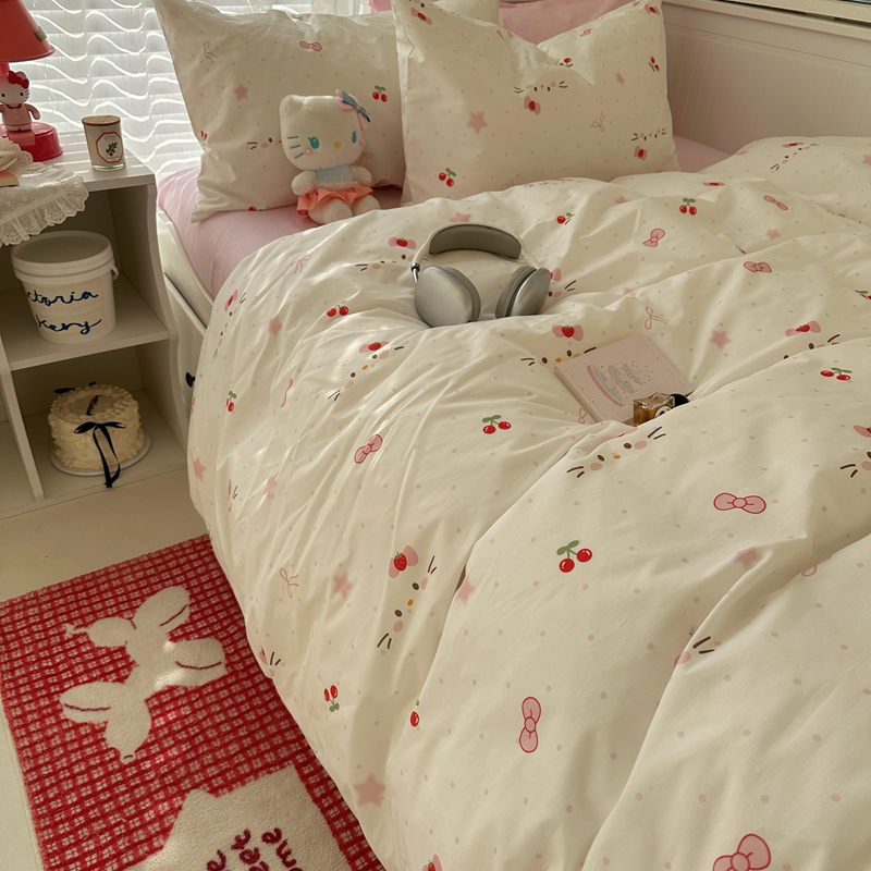 商品名称:(总)2026纯棉小清新ins风四件套可爱卡通被套纯色床单1.8床笠加大被套学生宿舍三件套