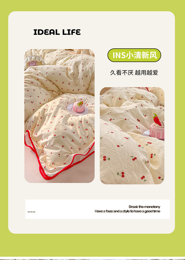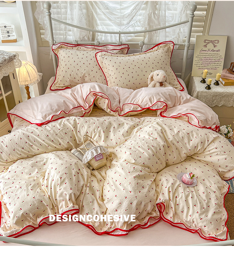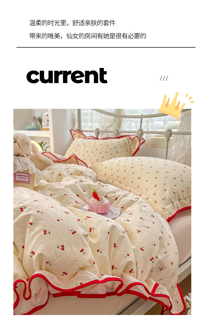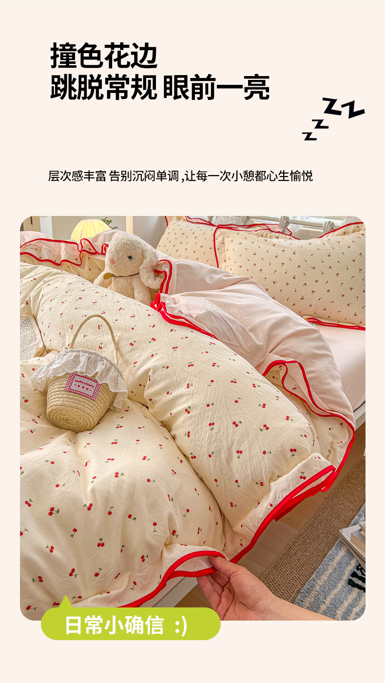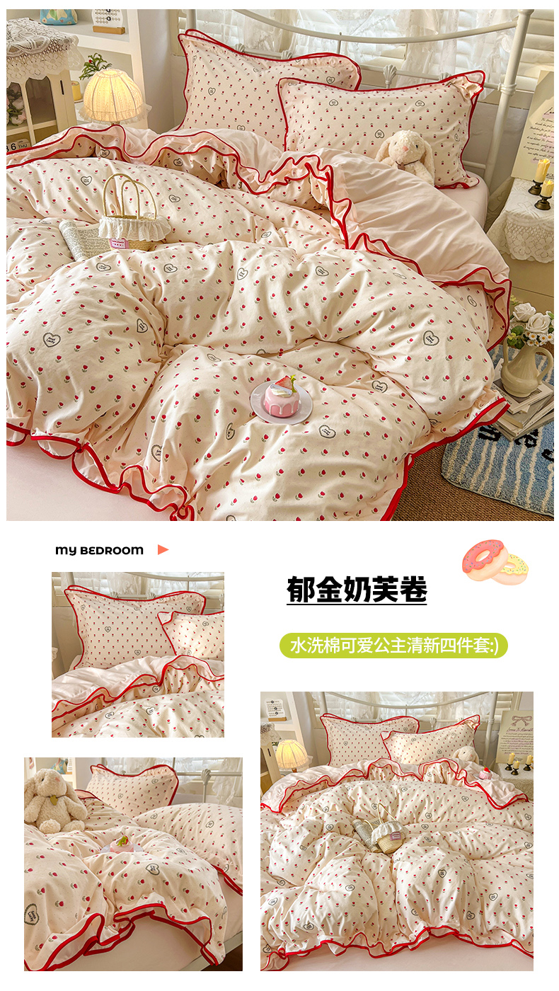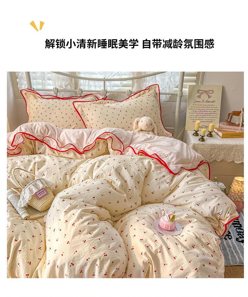当前位置: 91家纺网 > 商品网购 > 床品套件 > 四件套 > 其它四件套 > (总)贝凯瑞 2026新款水洗棉仿棉木棉双层纱粉嫩可爱公主清新ins四件套-樱桃气泡水+郁金奶芙卷