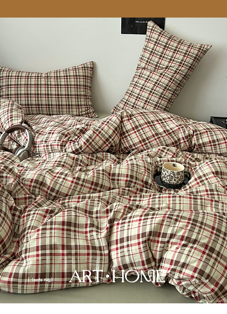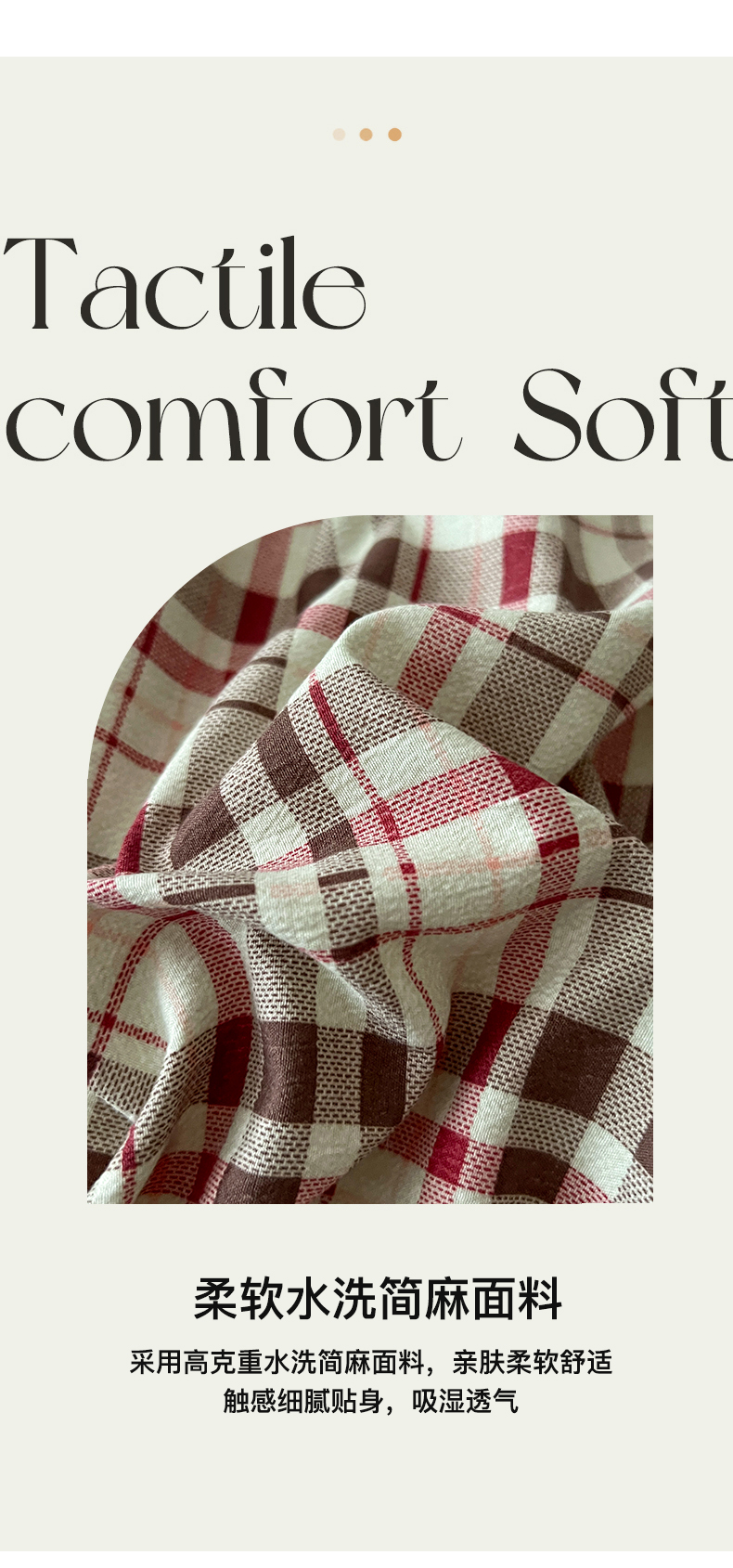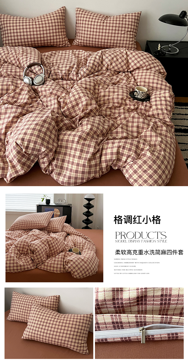 当前位置: 91家纺网 > 商品网购 > 床品套件 > 四件套 > 其它四件套 > 你好美丽 2026新款130克高克重格调简麻水洗四件套(暗合) 格调红大格