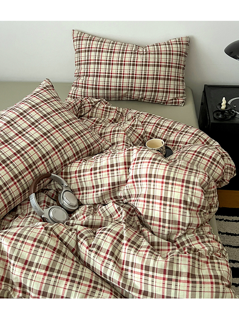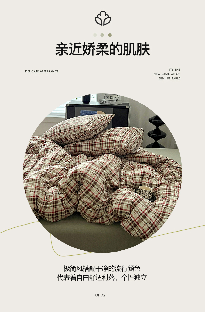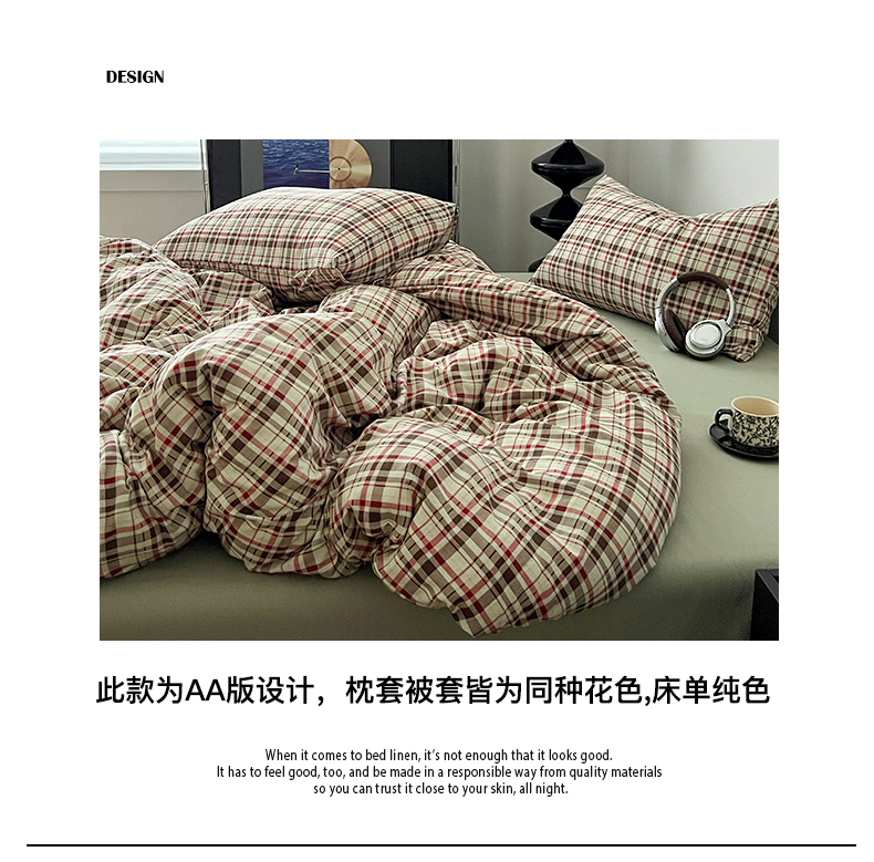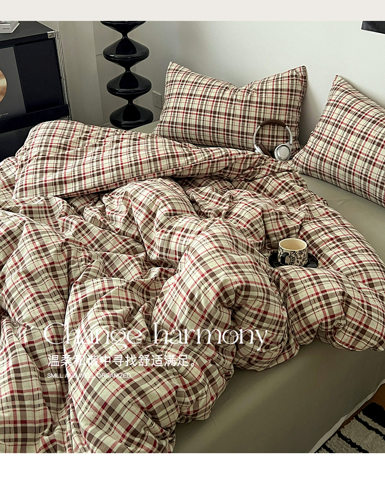 当前位置: 91家纺网 > 商品网购 > 床品套件 > 四件套 > 其它四件套 > 你好美丽 2026新款130克高克重格调简麻水洗四件套(暗合) 格调红大格