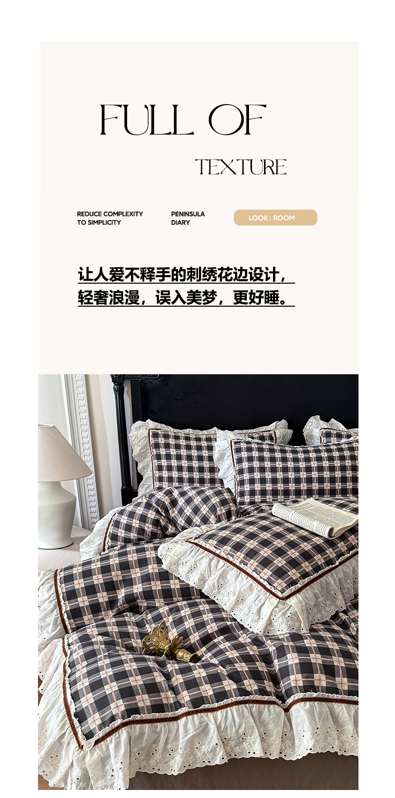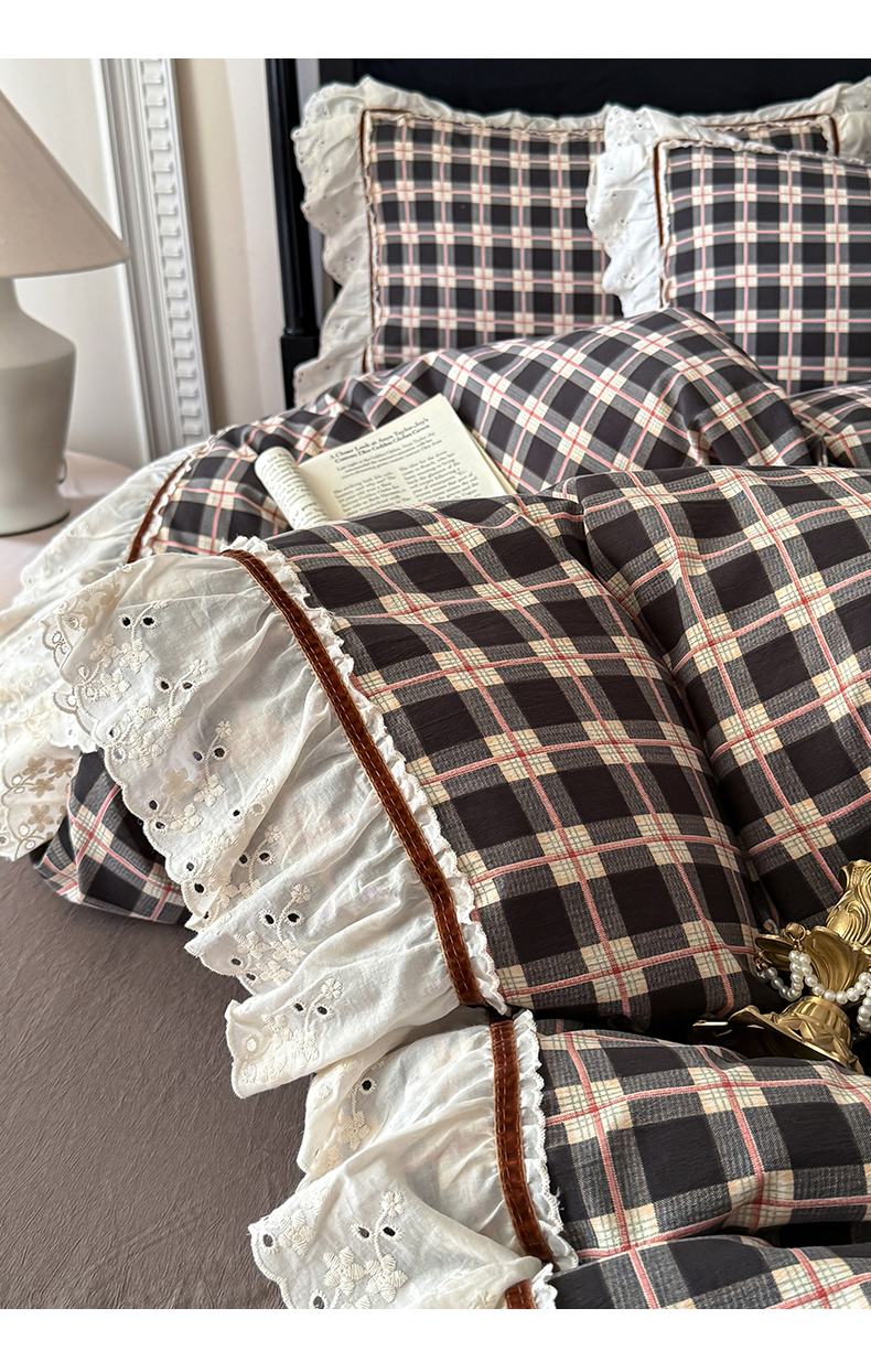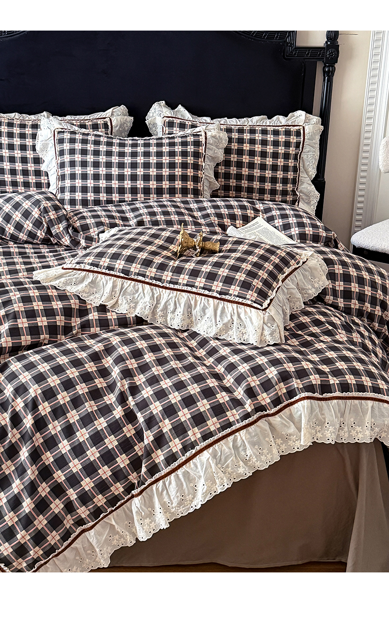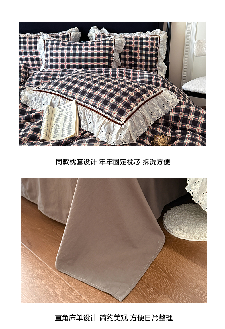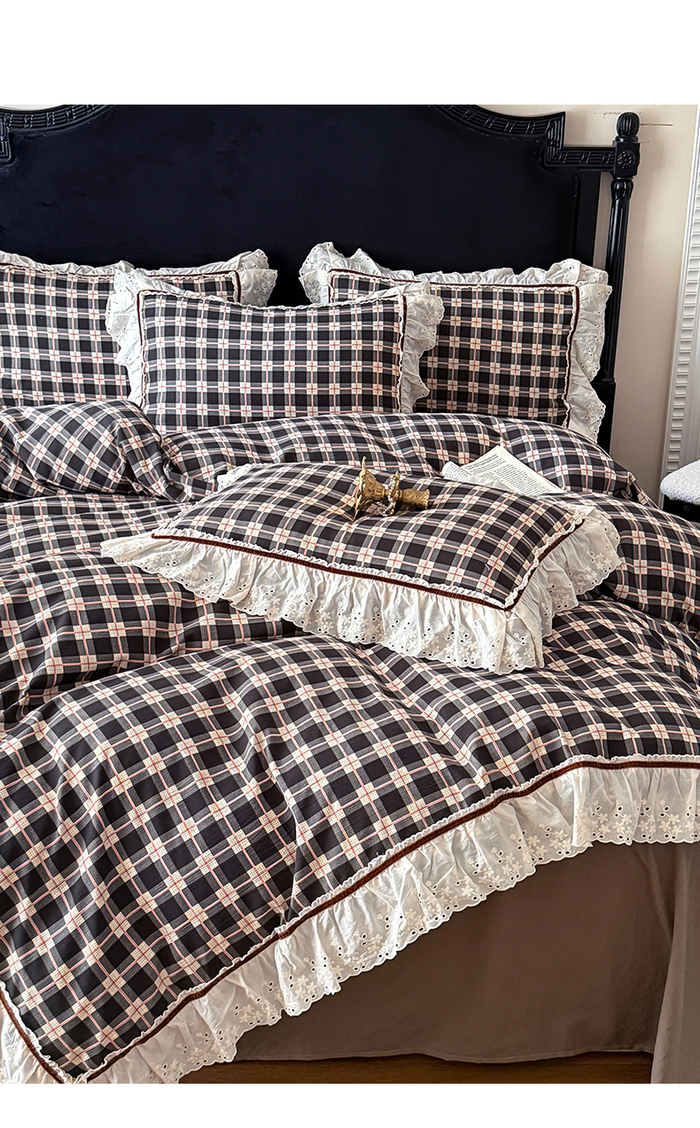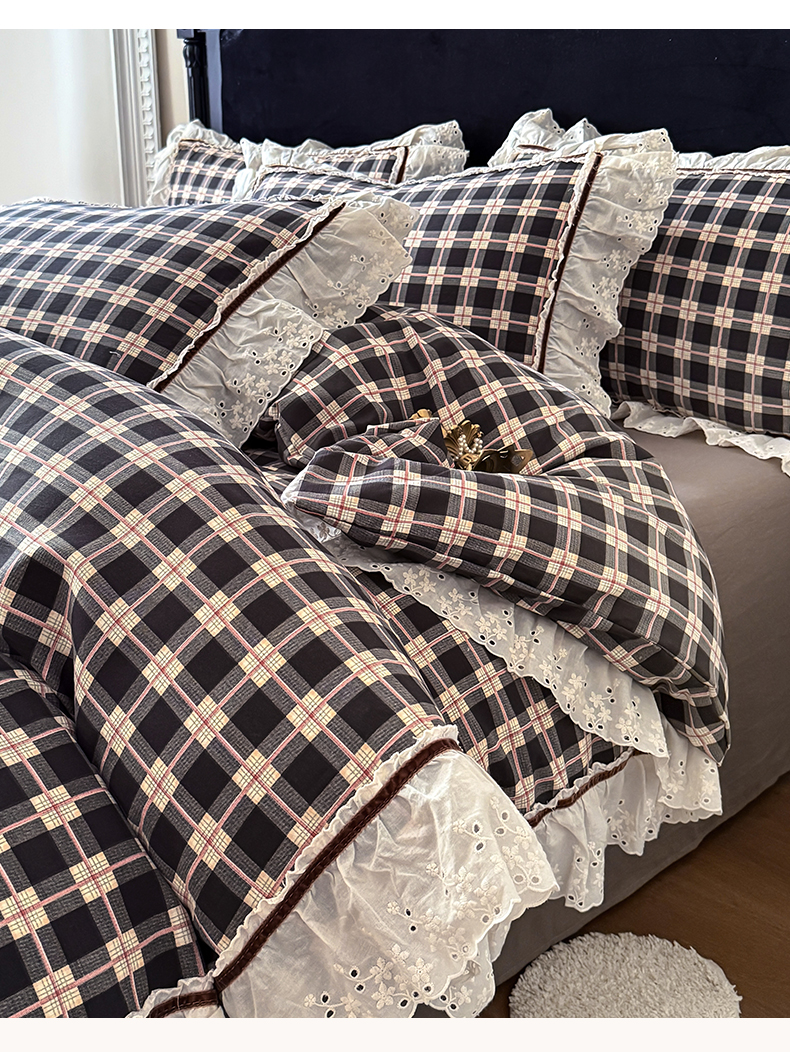 当前位置: 91家纺网 > 商品网购 > 床品套件 > 四件套 > 其它四件套 > 你好美丽 2026新款韩版刺绣水洗沐格简麻花边系列四件套 沐格黑格