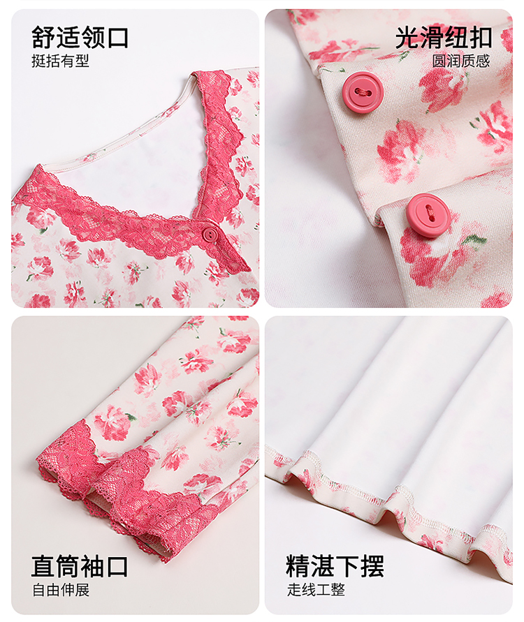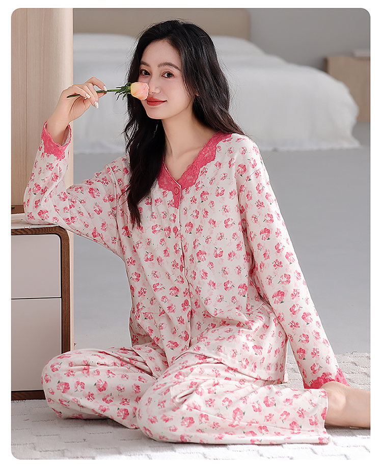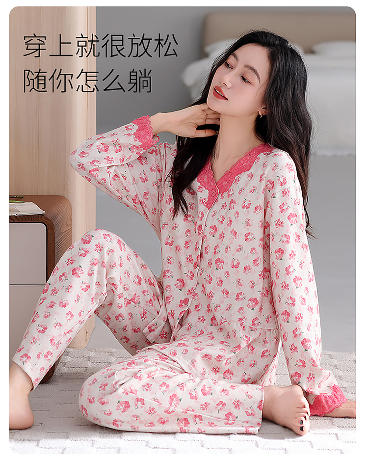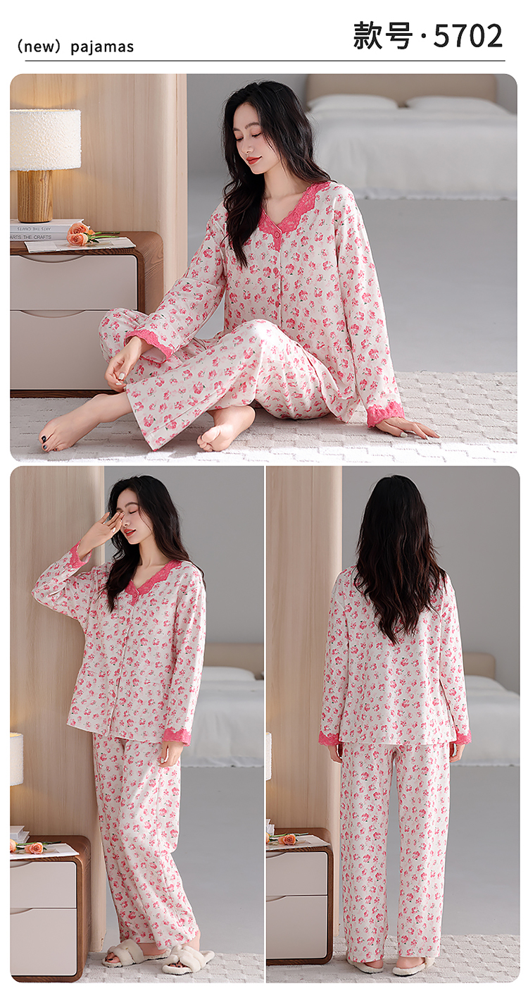 (总)洛兰沙家居馆 2026新款长袖睡衣女款纯棉春季印花开衫翻领家居服可外穿套装 第二批,45145,45146,45147