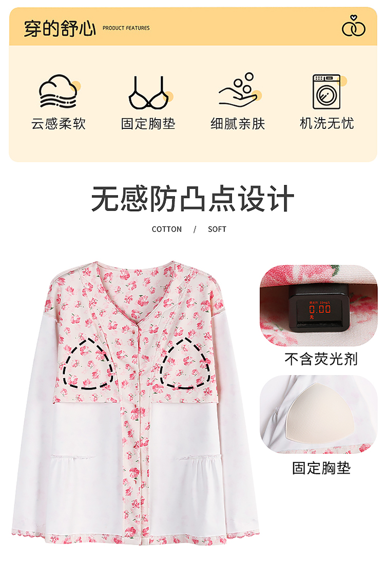 (总)洛兰沙家居馆 2026春季新款自带胸垫纯棉居家睡衣女长袖套头可爱家居服套装 第二批,31086,31087,31088,31089