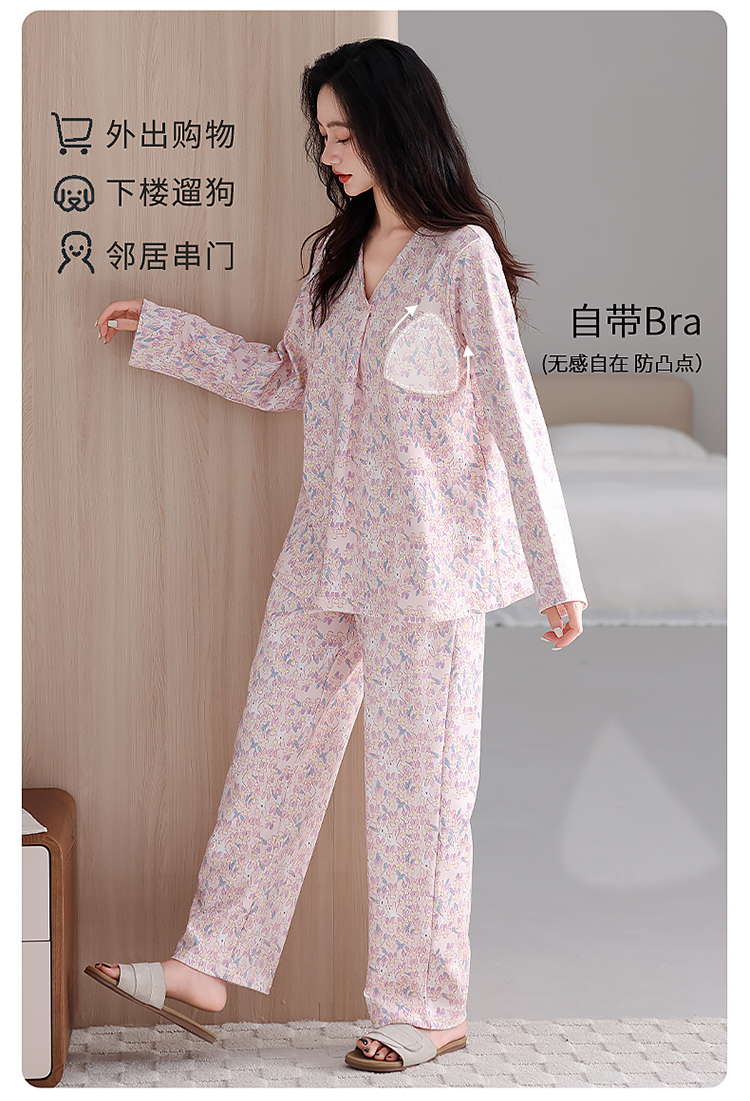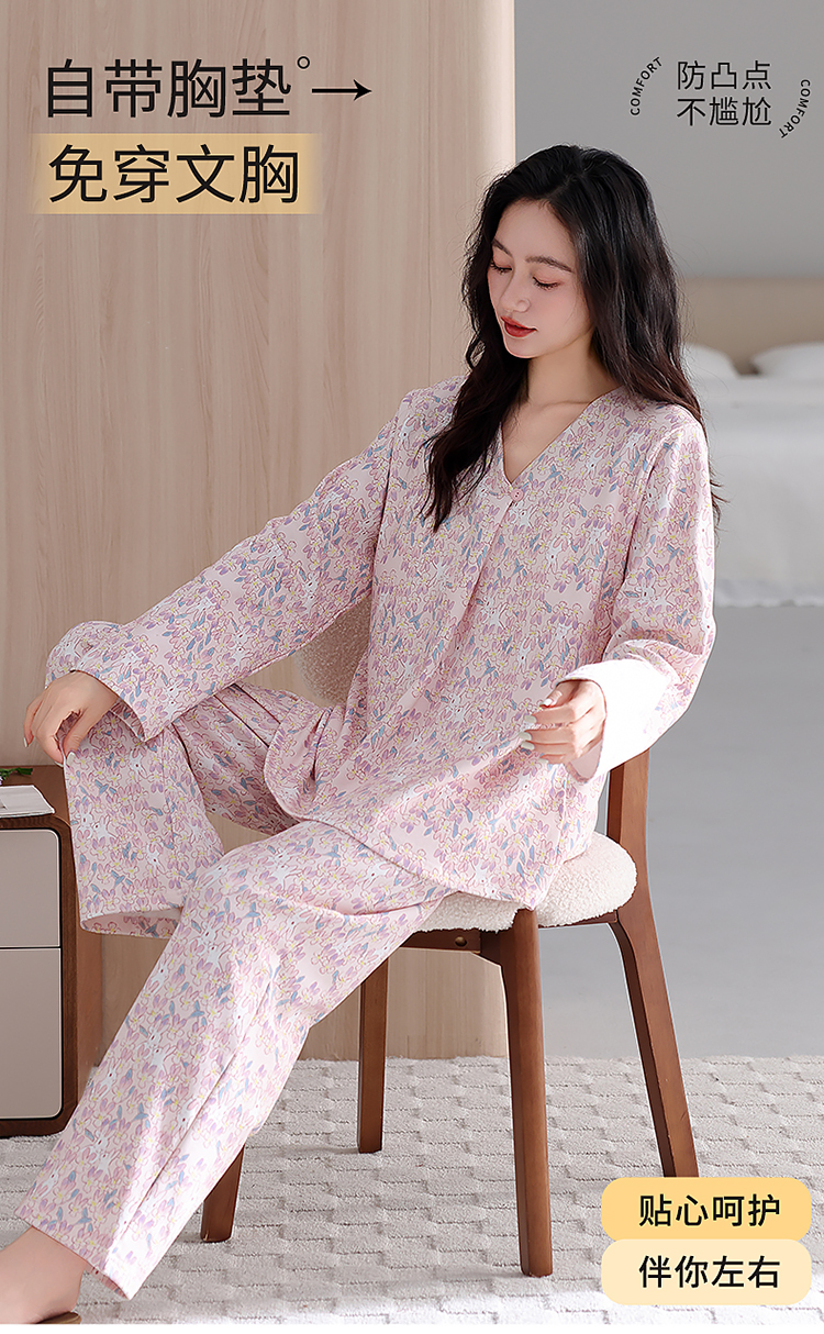 商品名称:(总)2026新款拉架棉长袖秋冬带胸垫防凸点可外穿家居服女士宽松睡衣家居服 第11批