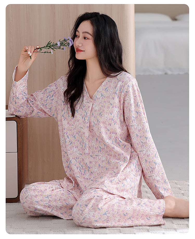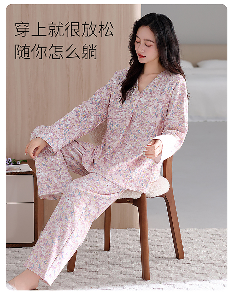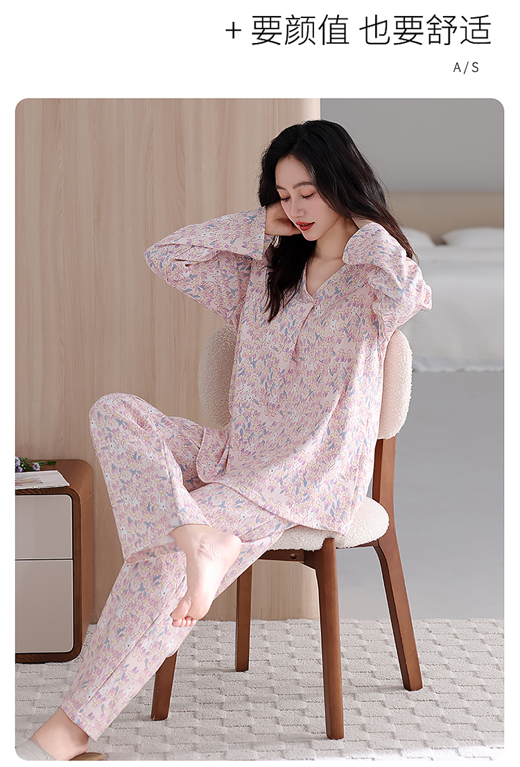 (总)洛兰沙家居馆 2026新款长袖睡衣女款纯棉春季印花开衫翻领家居服可外穿套装 第二批,45145,45146,45147