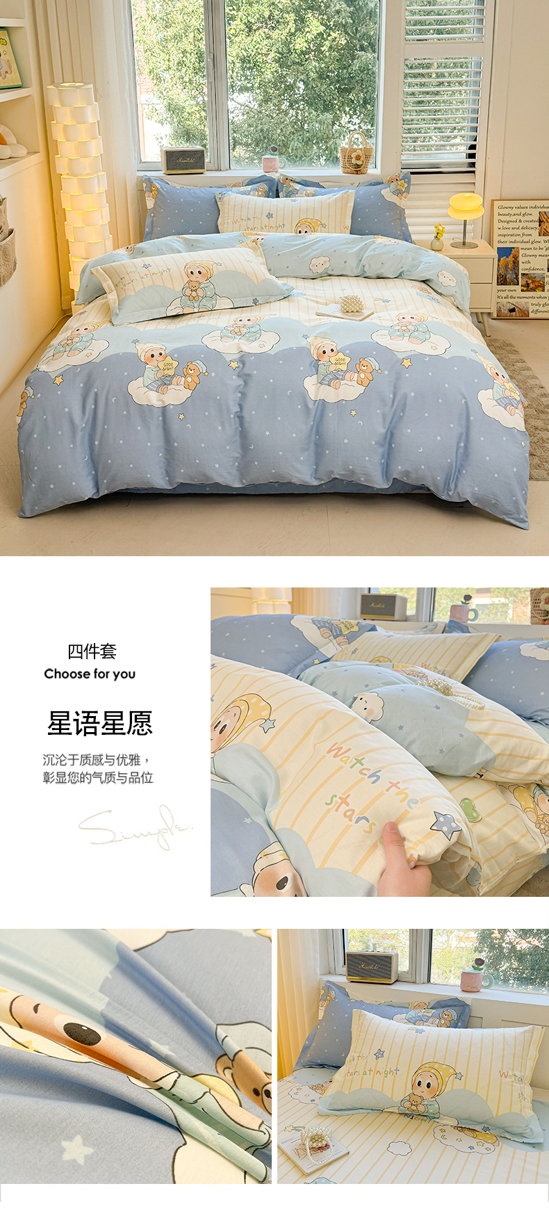(总)名优家纺 2026新款12868全棉小清新印花四件套单品系列-四件套,安妮日常,冰激凌派对,动物花园,几何飞船,困困腊肠狗,帽子比熊,西西莉亚,夏瑾,徐徐花开,谣谣玉穗