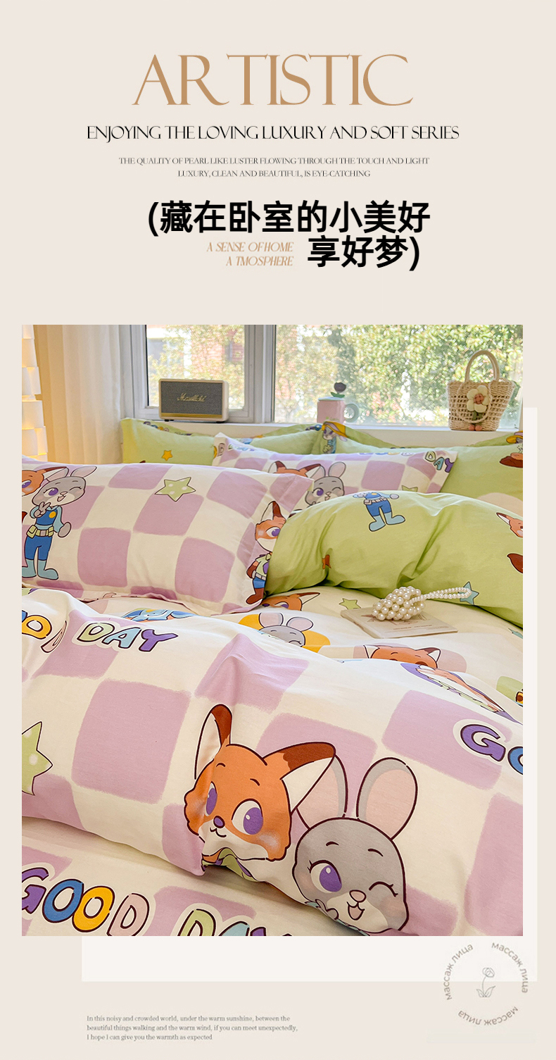 当前位置: 91家纺网 > 商品网购 > 床品套件 > 四件套 > 全棉普通四件套 > 名优家纺 2026新款13070全棉印花四件套 开心动物城