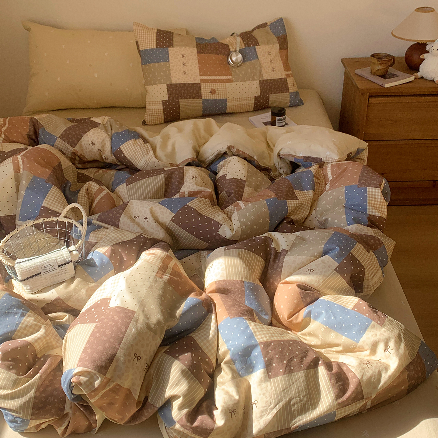 (总)桃喜 2026春夏新品全棉碎花三件套四件套-场景一,粉格拼布碎花(全棉),复古碎布拼花(全棉),馥郁蓝(全棉),赫本(全棉),绿格拼布碎花(全棉),山茶(全棉),香芋紫格碎花(全棉),早春花园(全棉)