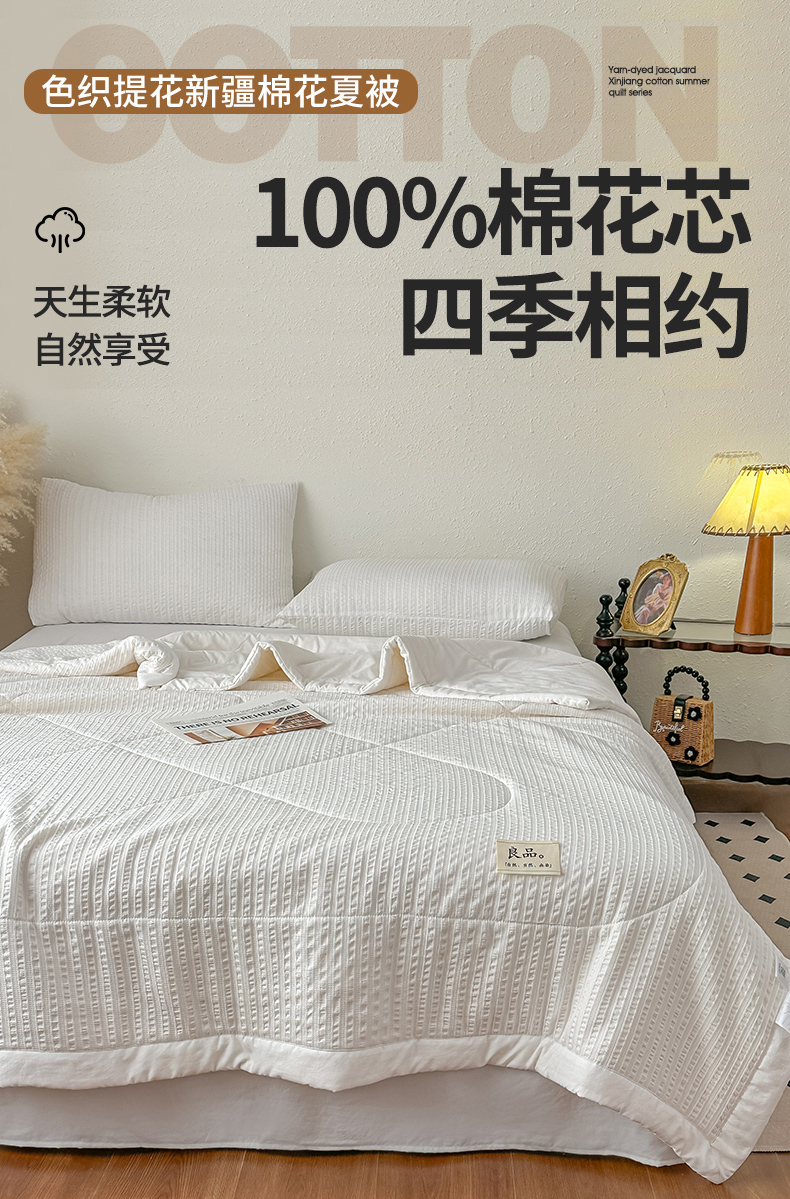 (总)尊妙被业 2026新款良品条白100%新疆棉花夏被,良品条白+粉,良品条白+咖,良品条白+蓝,良品条白+绿