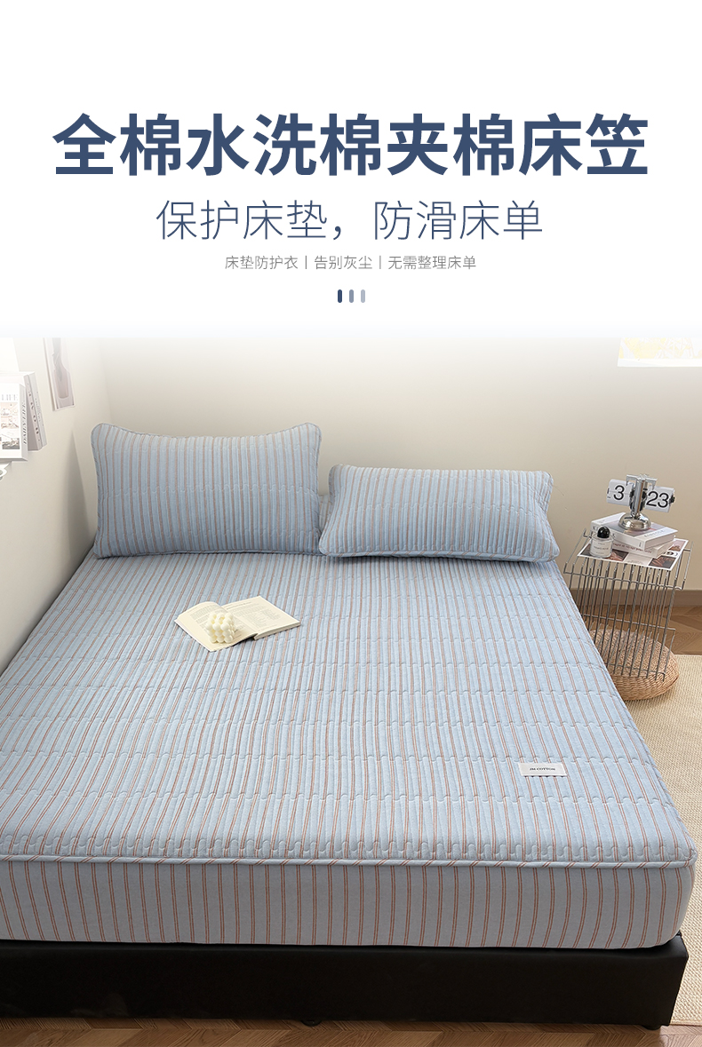 (总)居眠 2026新款全棉色织水洗棉格子夹棉棉花床笠