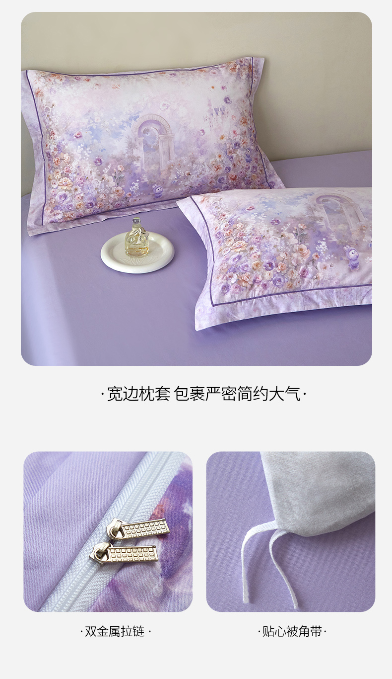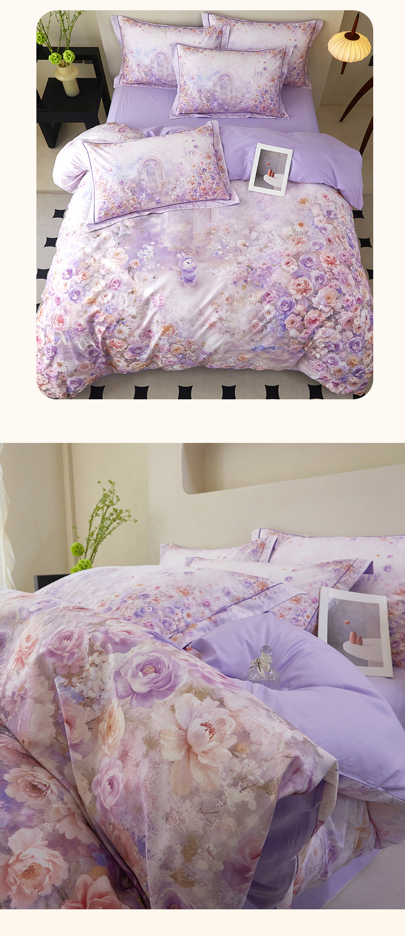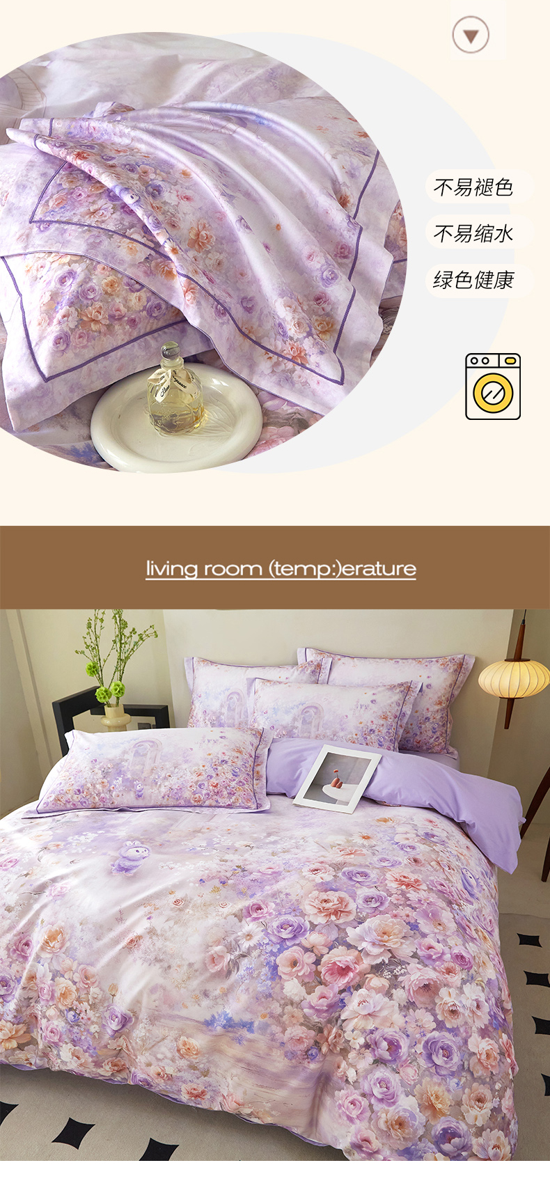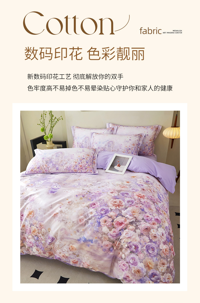 商品名称:启航家居 2026新款全棉铂金棉数码印花四件套 童话乐园紫