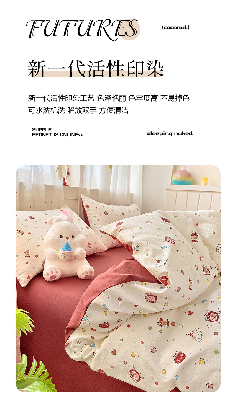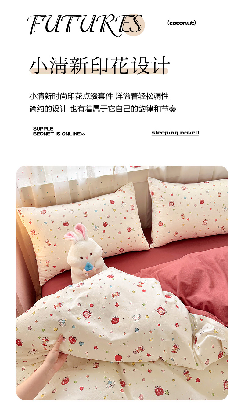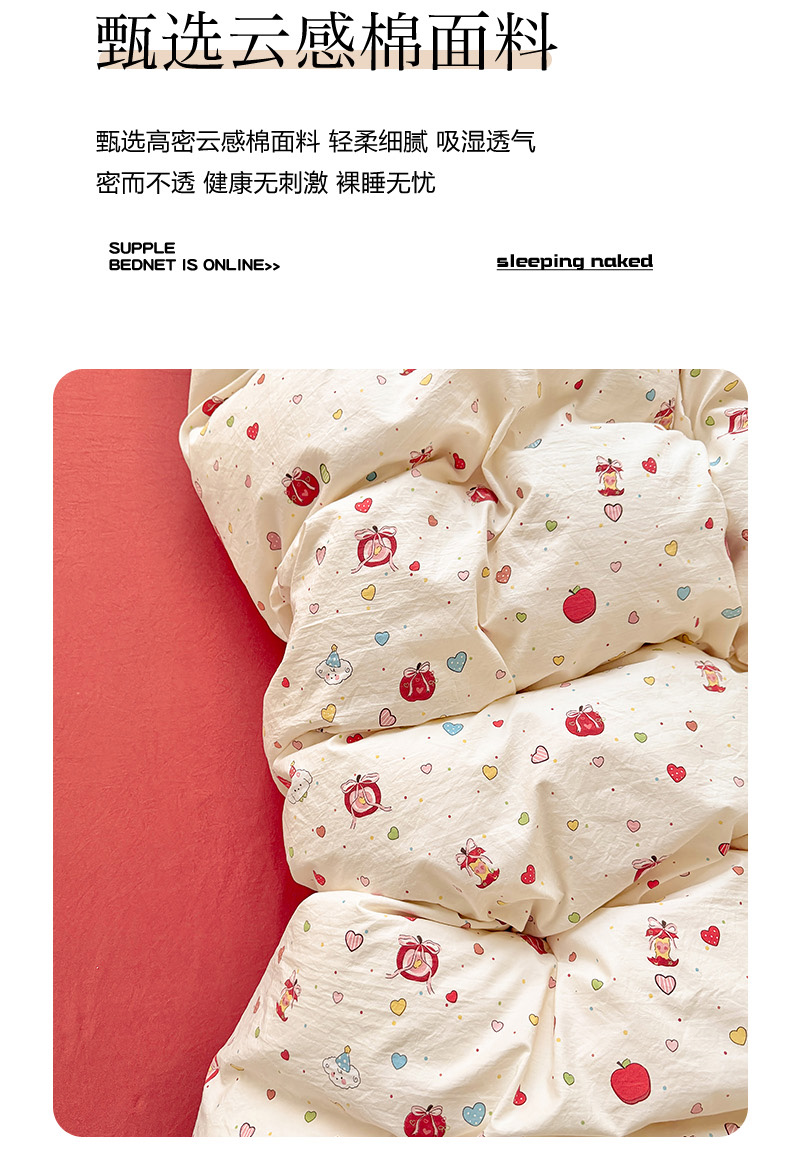 当前位置: 91家纺网 > 商品网购 > 床品套件 > 四件套 > 水洗棉四件套 > 卢赛尔 2026新款古法水洗仿棉云感棉学生三件套四件套 苹果派
