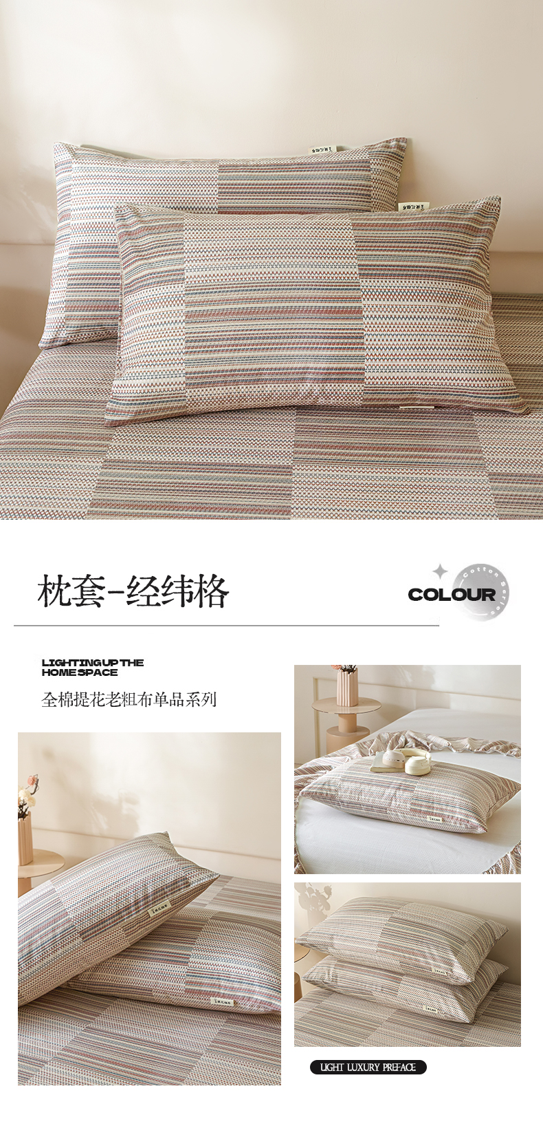 涵宸家纺 2026新款全棉提花老粗布-单枕套 枕套-彩花语