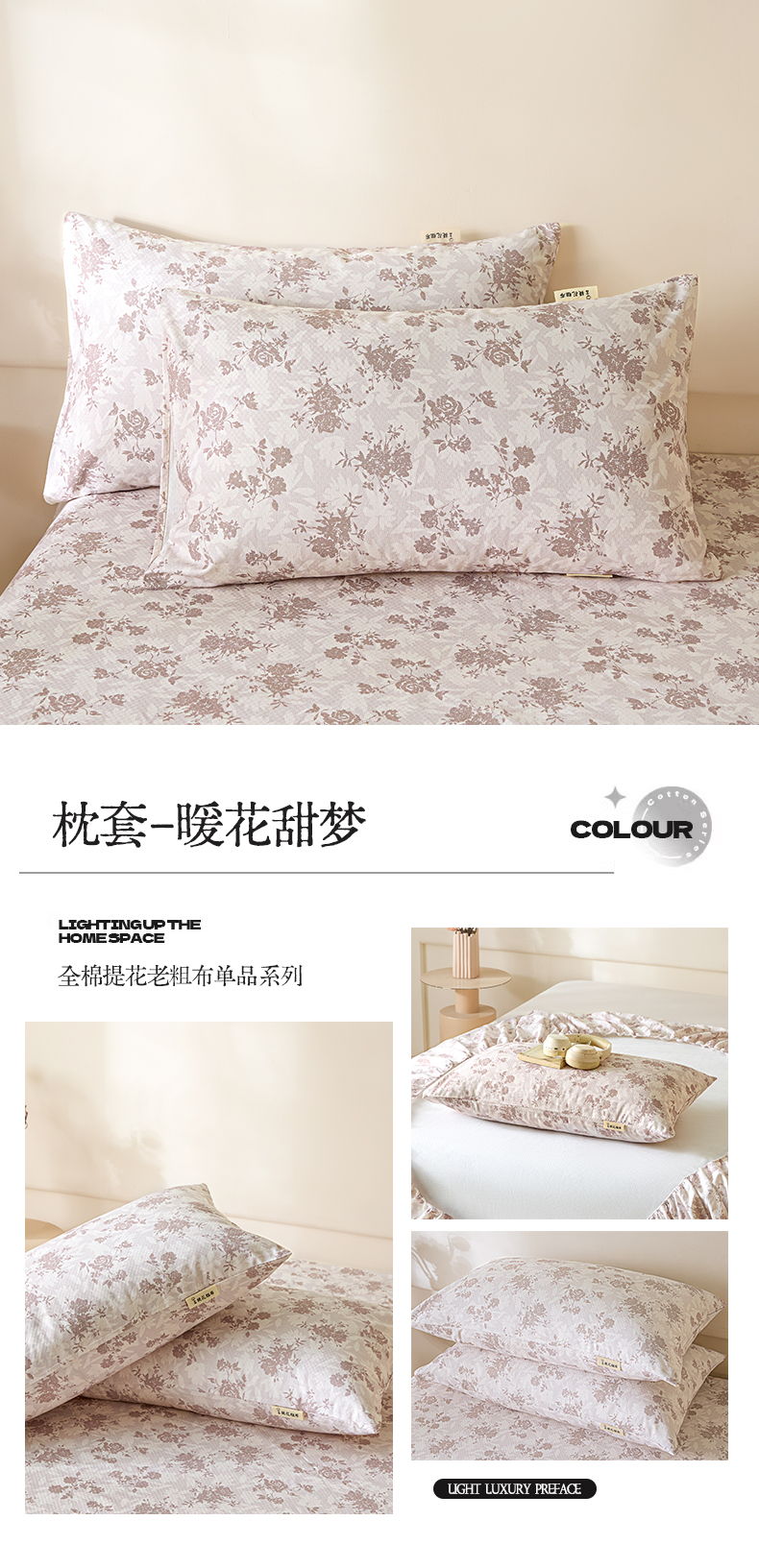 商品名称:涵宸家纺 2026新款全棉提花老粗布-单枕套 枕套-彩花语