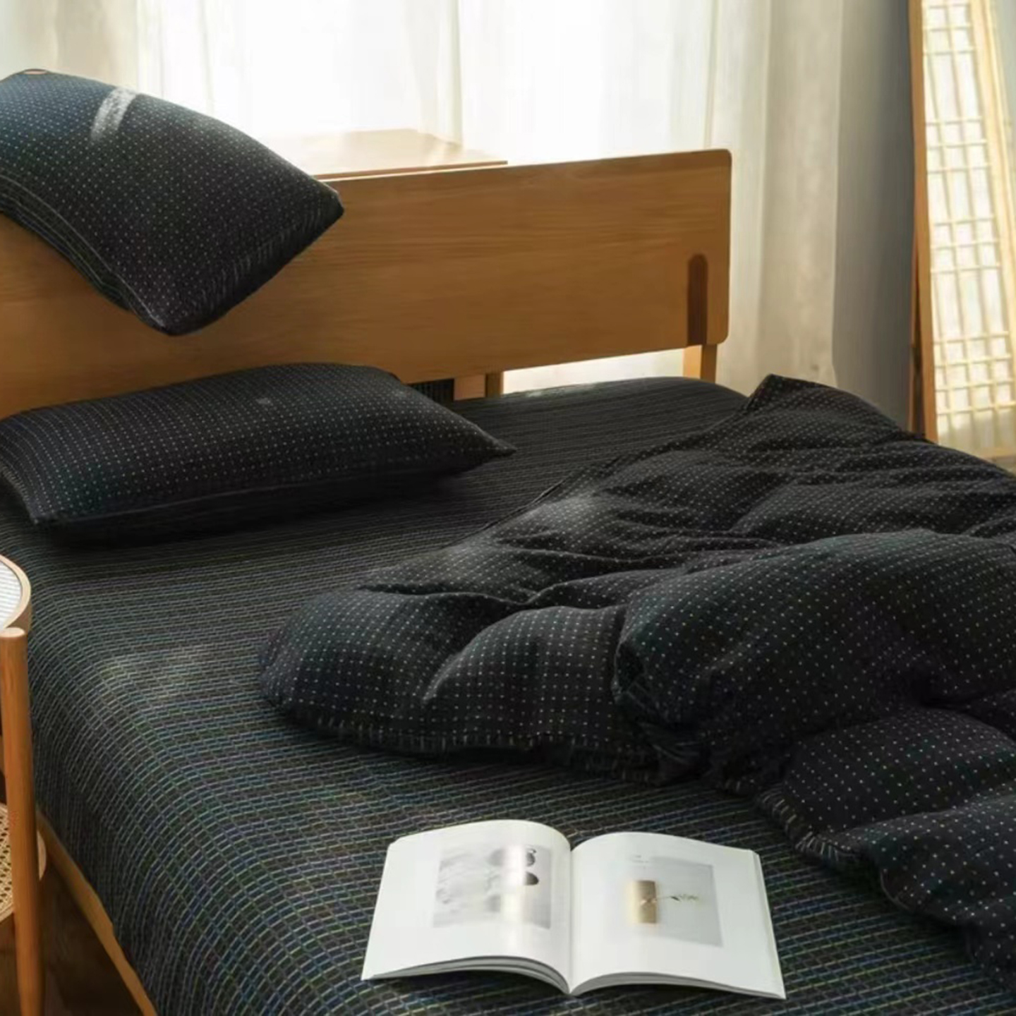 (总)双层纱家居 2024新款素色四件套,星光灿烂灰,幸福星黄,幸福星绿,幸福星浅紫