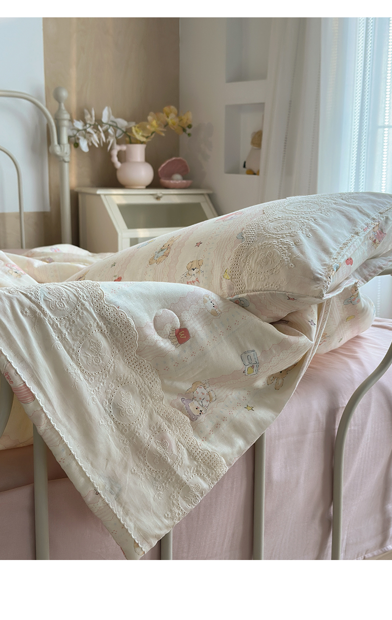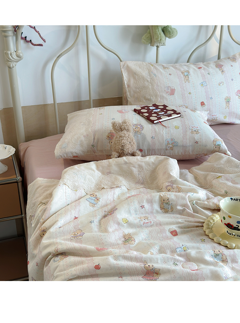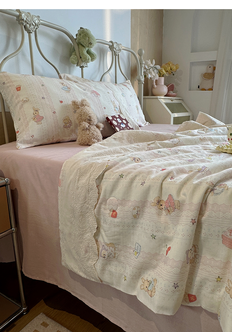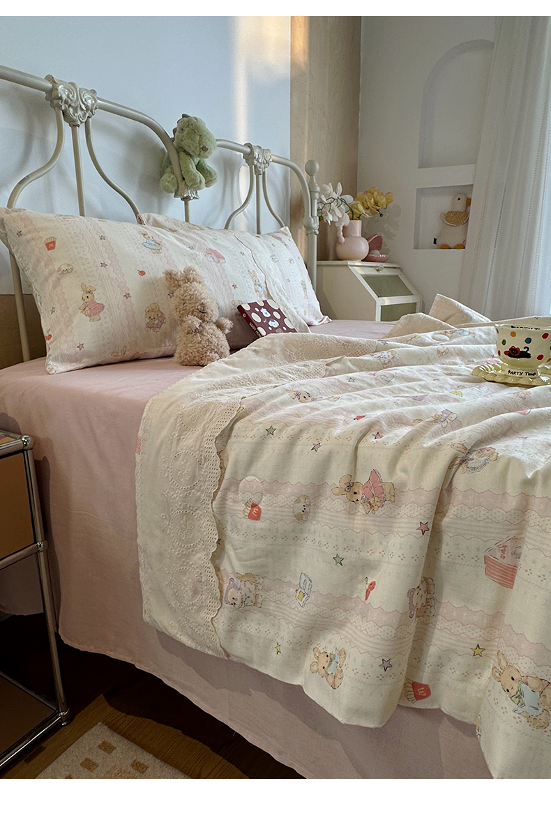 当前位置: 91家纺网 > 商品网购 > 床品套件 > 四件套 > 夏被四件套 > 绫韵家纺 2026夏季新品A类全棉双层纱法式大花边夏被四件套 茉叶
