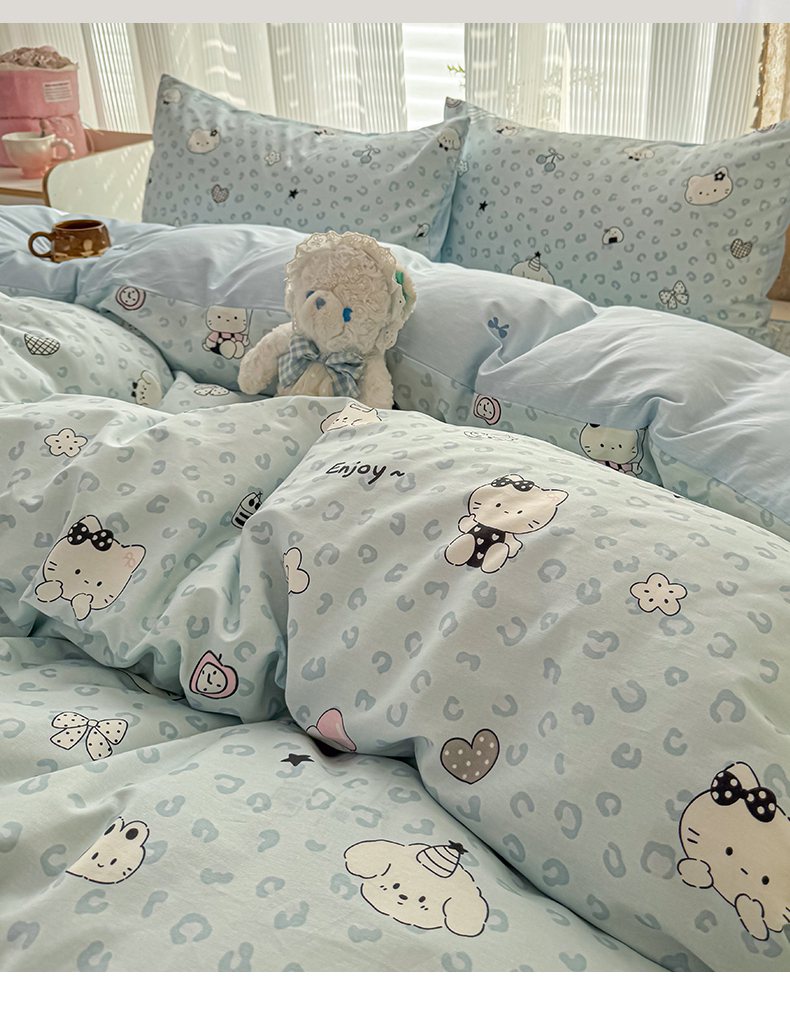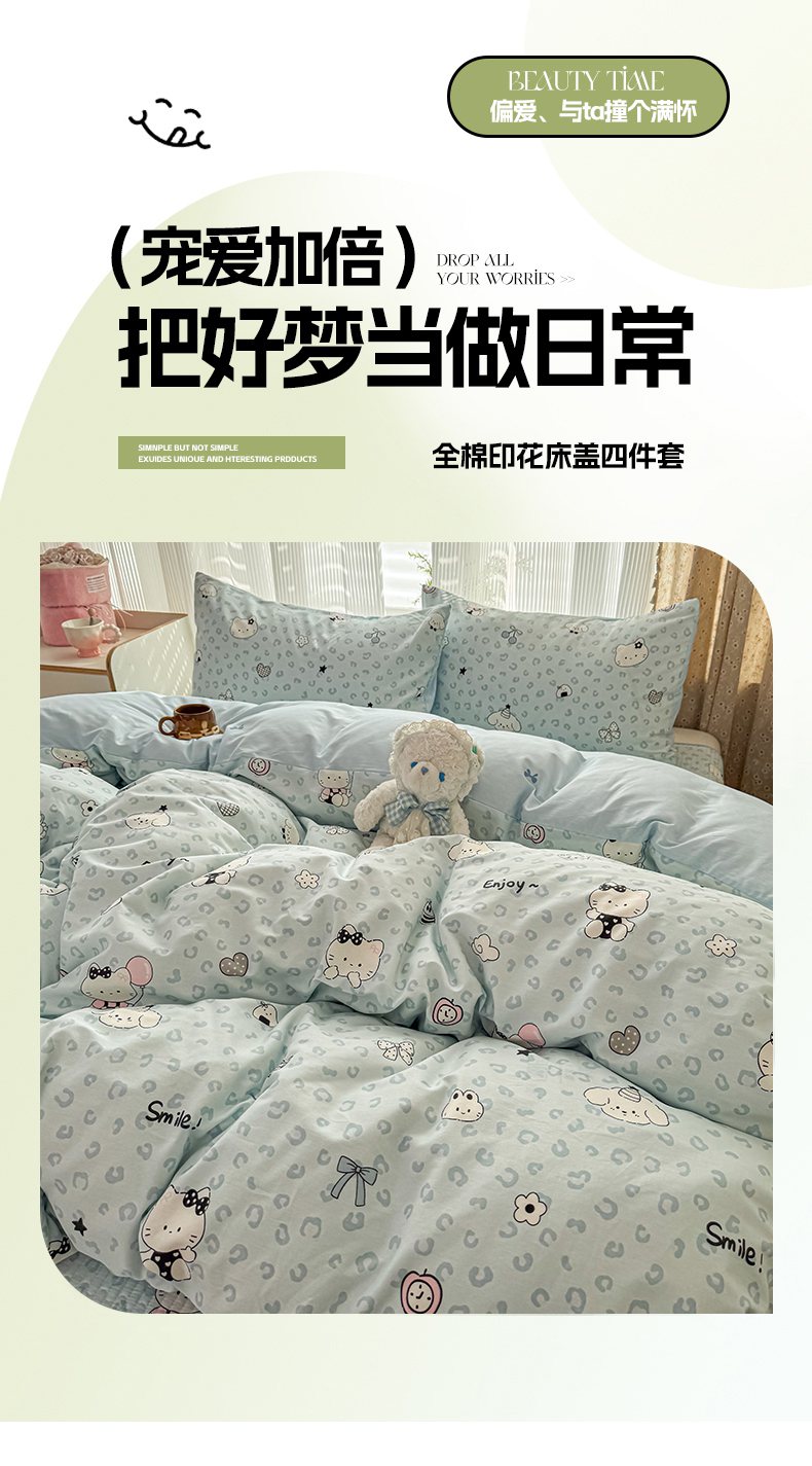 当前位置: 91家纺网 > 商品网购 > 床品套件 > 四件套 > 全棉普通四件套 > KA家纺 2026春夏新款全棉床盖款卡通印花四件套 豹纹猫咪