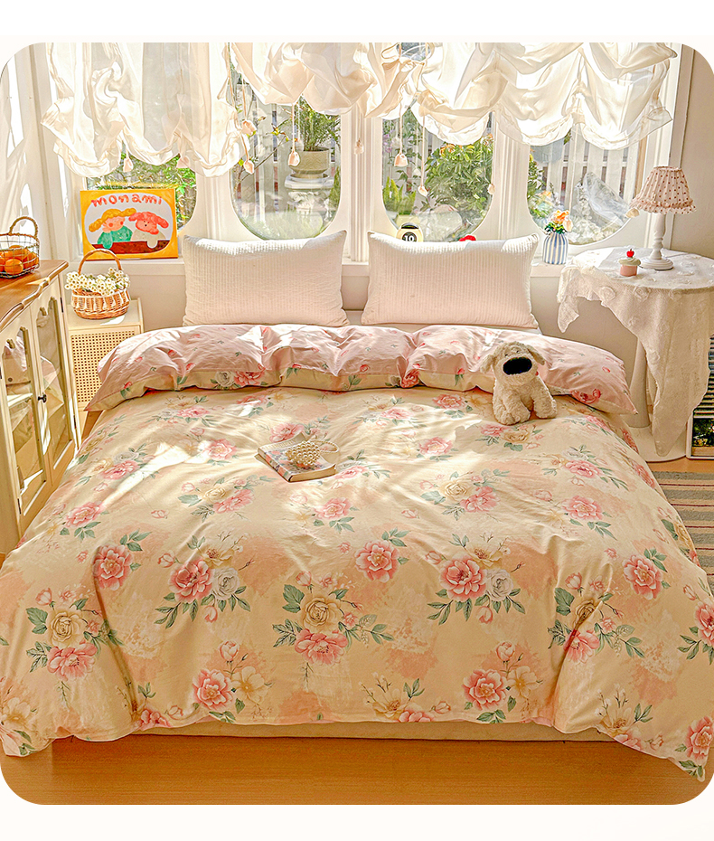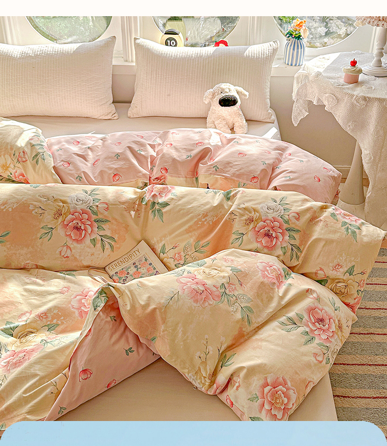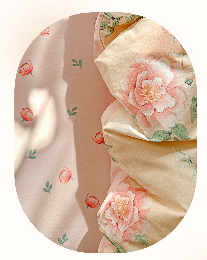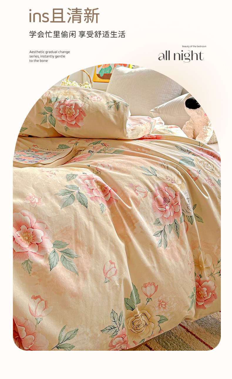 • 91家纺网 家纺一手货源 找家纺 恩泽家纺 2026新款13372ins全棉印花四件套单品系列-单被套 晨曦海棠