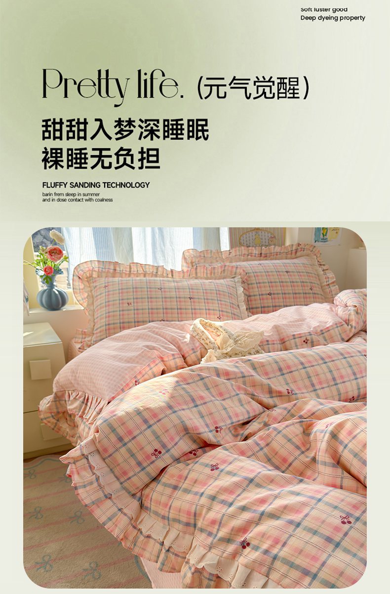 商品名称:乐童家纺 2026新款纯棉双层花边小清新系列四件套 樱桃窗台