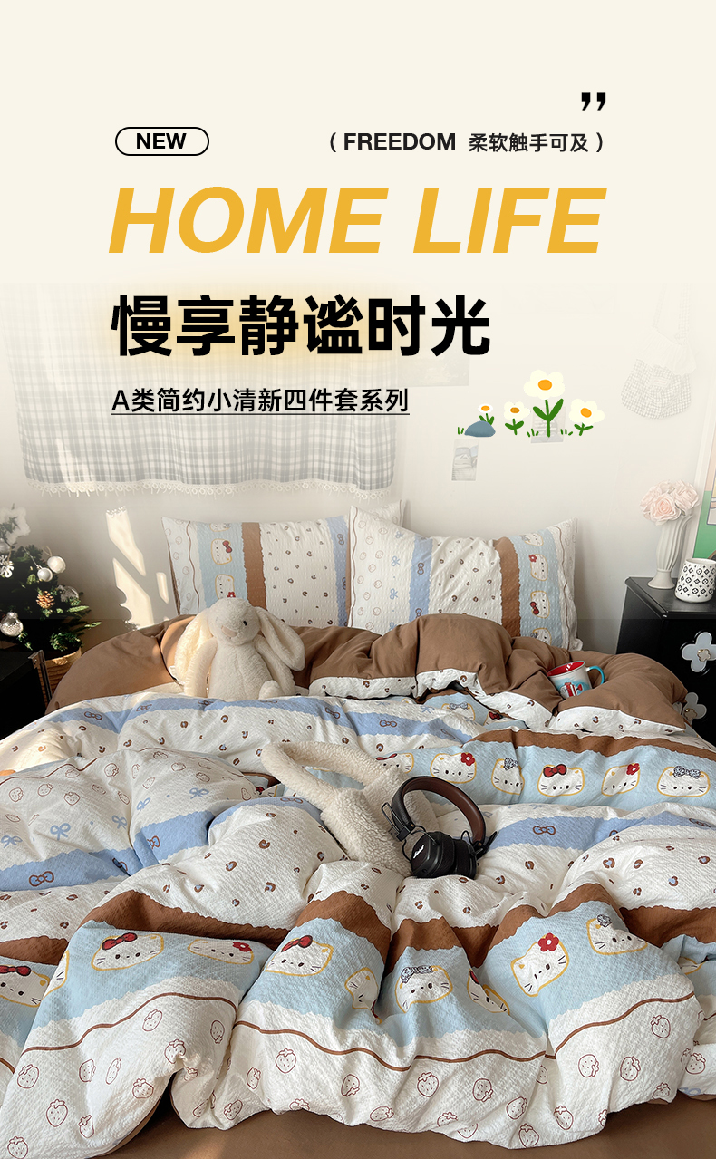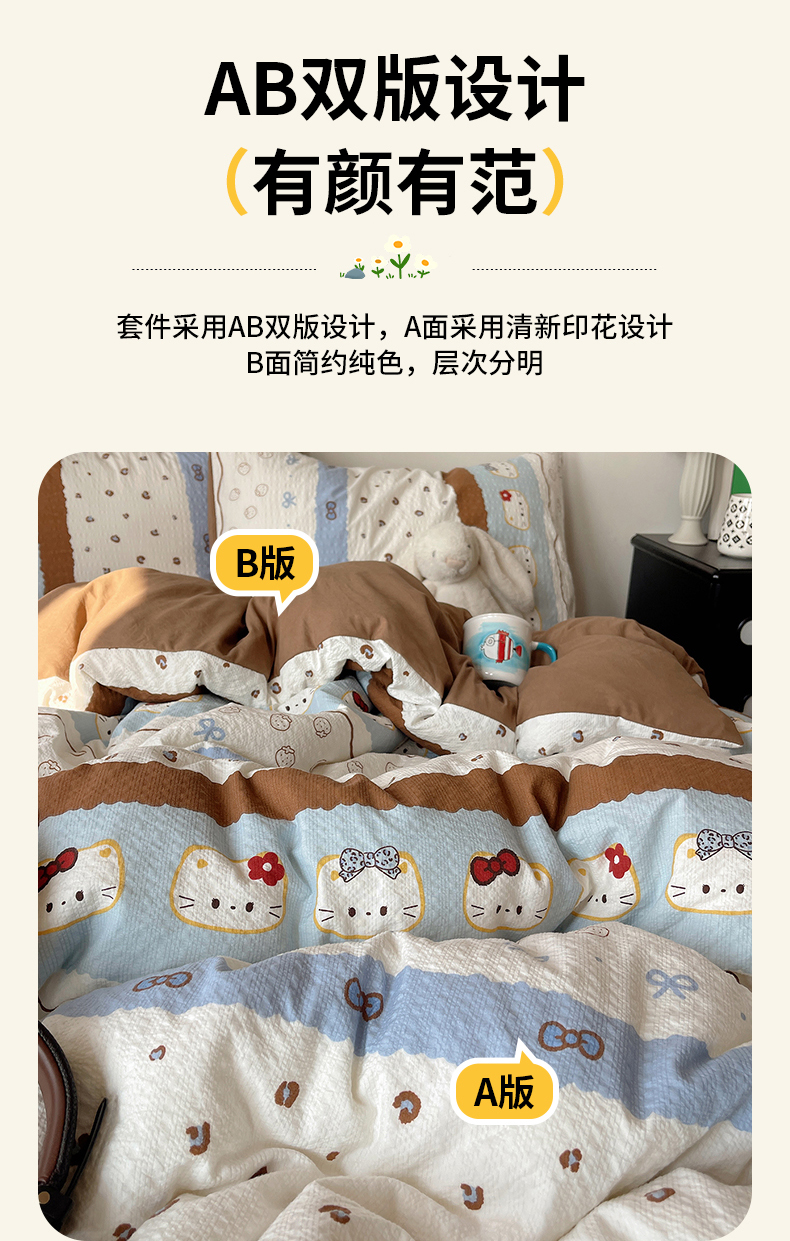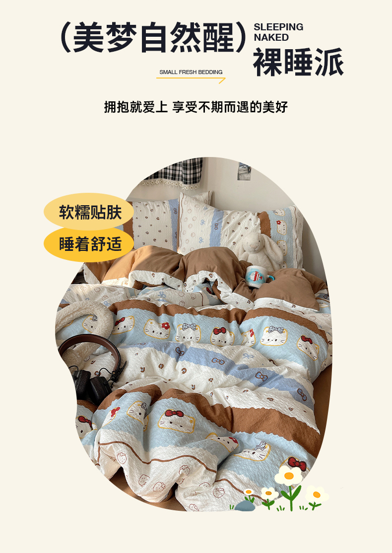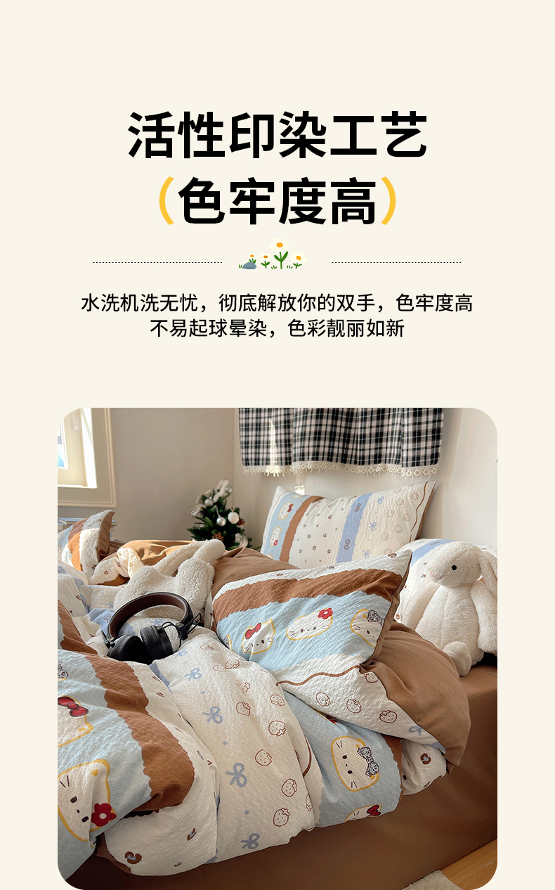 当前位置: 91家纺网 > 商品网购 > 床品套件 > 四件套 > 其它四件套 > 沐芷 2026 高克重110g泡芙棉四件套A类床上用品被套宿舍床单三件套【提供买家秀】 可可猫条
