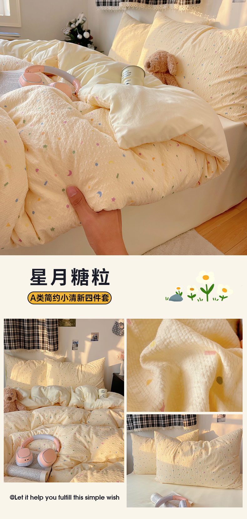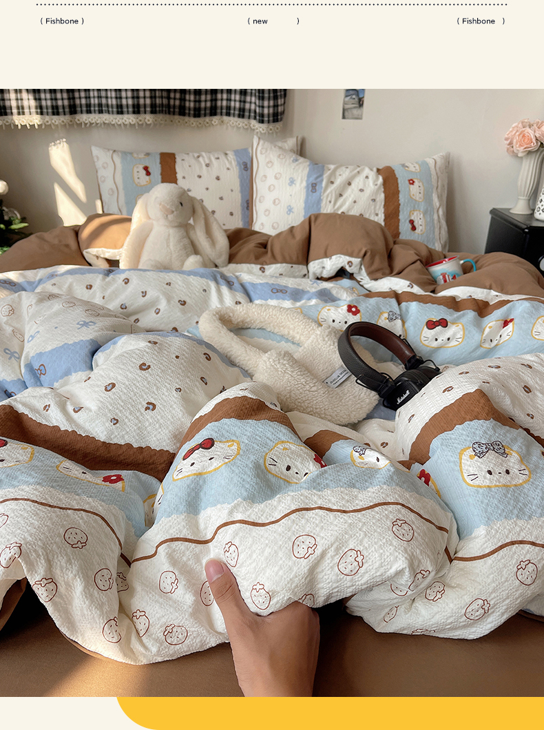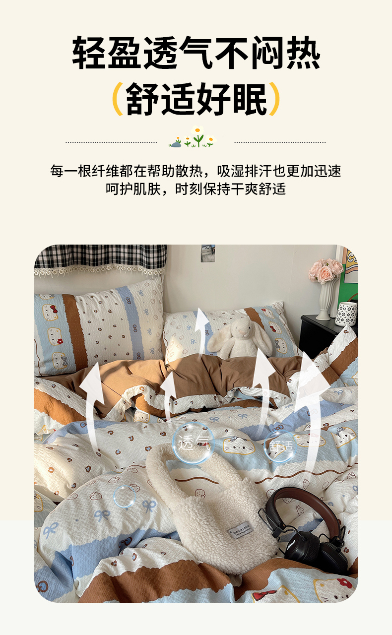 当前位置: 91家纺网 > 商品网购 > 床品套件 > 四件套 > 其它四件套 > 沐芷 2026 高克重110g泡芙棉四件套A类床上用品被套宿舍床单三件套【提供买家秀】 可可猫条