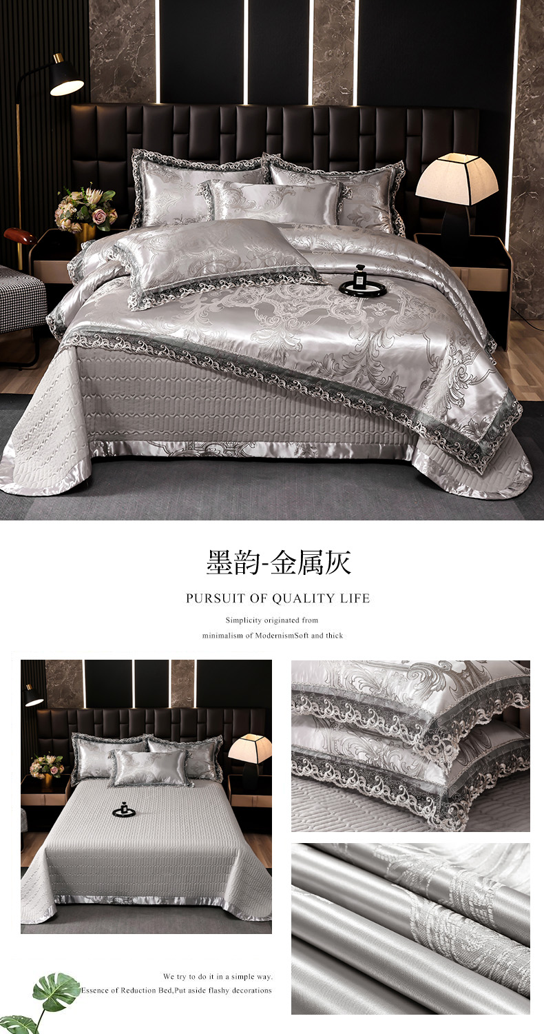 (总)提花大世界 2026新款直播爆款水洗真丝天丝贡缎提花夹棉床盖花边四件套,波西花园-浅豆沙,花间-金驼,花开-粉玉,墨韵-金属灰,奈欧莎-深豆沙,雅布洛-祖母绿,英伦时尚-绿