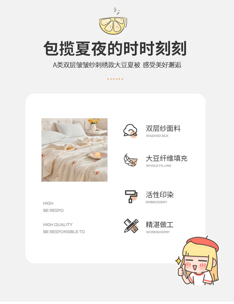 • 适用季节: 空调被/夏凉被