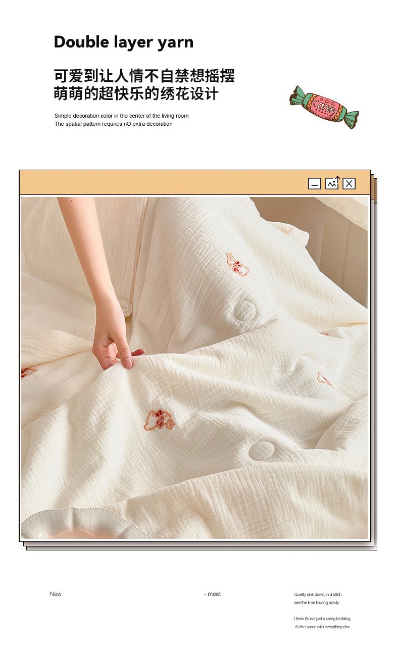 • 91家纺网 家纺一手货源 找家纺 木楌家居 2026新款全棉皱皱纱刺绣款夏被床盖四件套 领结兔